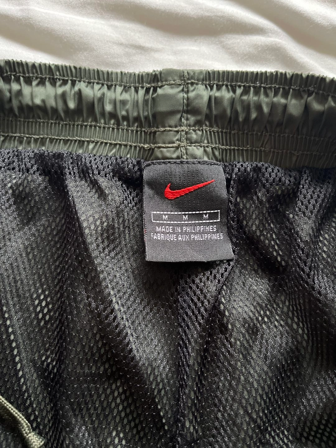 Dark Green colour Nike pants. Synthetic waterproof type material on the outside, net on the inside. Womens Medium size