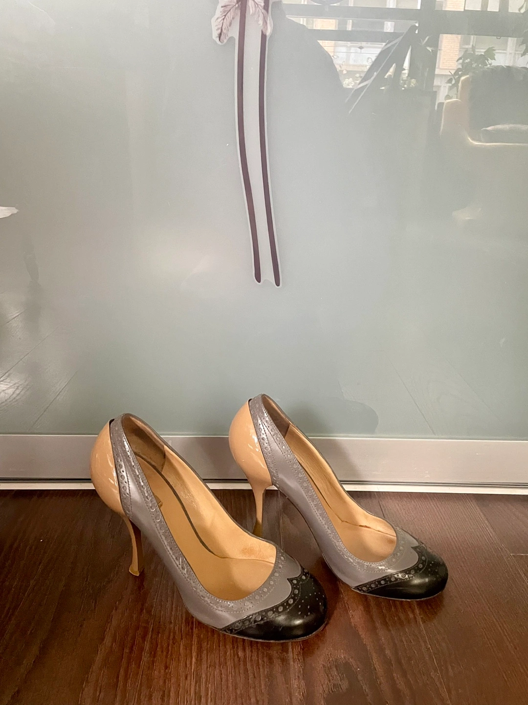 Fabulous vintage Miu Miu pumps. Size 37. Made in Italy. Really great vintage condition. Add them to your well curated closet. (They make a great first pair of high fashion heels too.) Heel height 9cm Pick up around Sherbourne/ Wellesley Could ship/ deliver for a fee