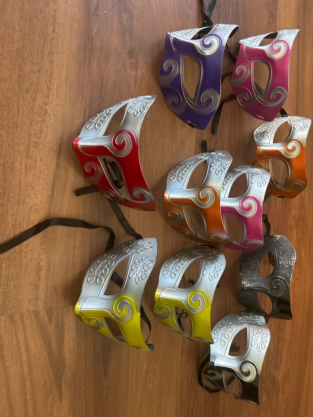 Several Venetian masquerade masks available. A variety of colors including-Silver and gold with different colored accents. Great for Halloween!!