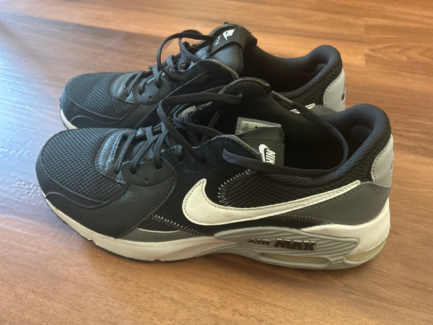Black and grey running shoes with white accents. Lace-up closure. Worn once.