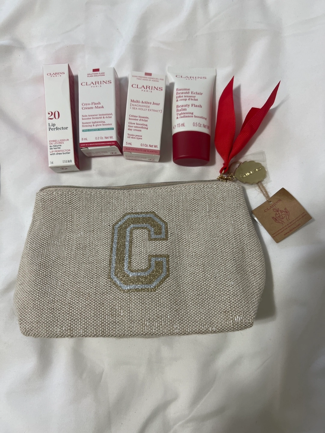 96Set includes 3 mini skincare products. Includes a small makeup bag.