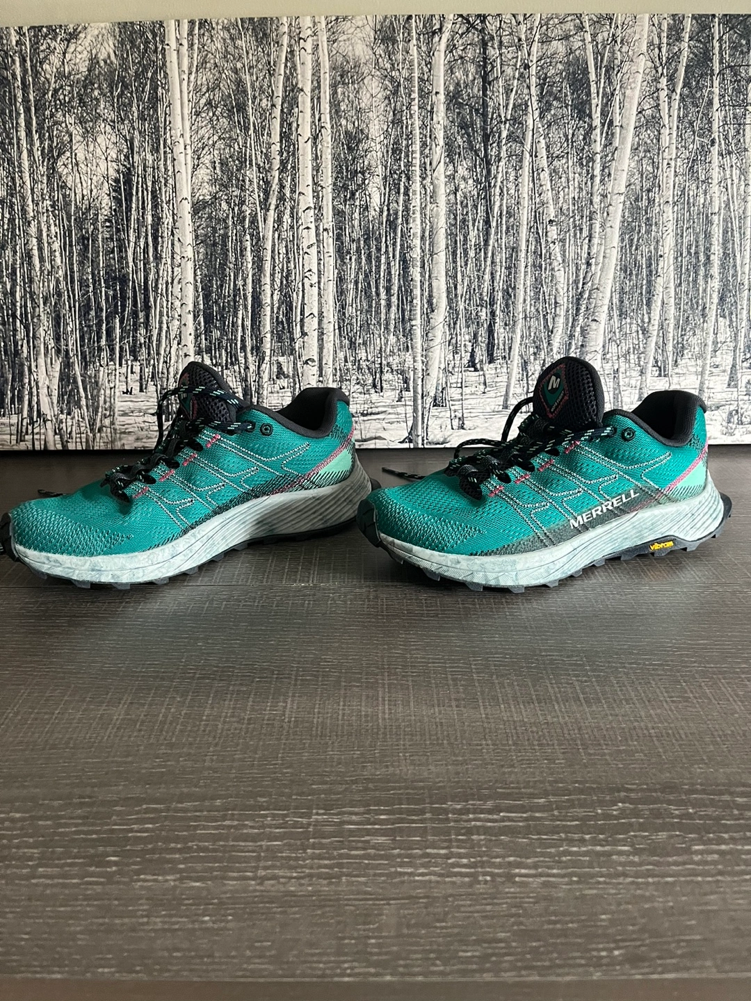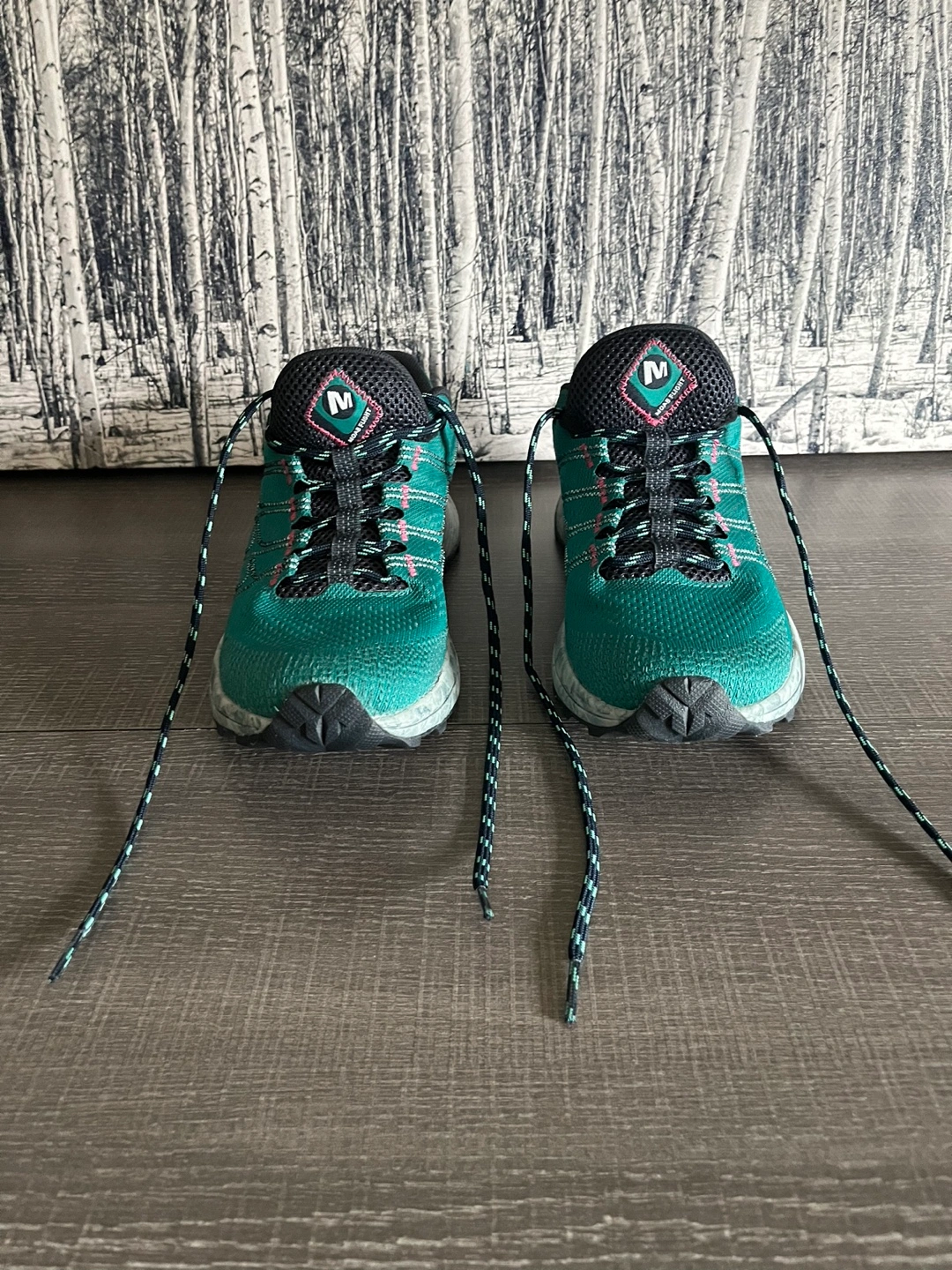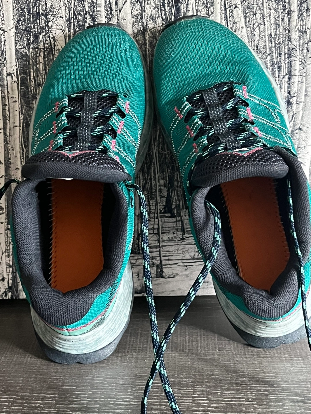 Teal and black running/trail shoes. Size 7, like new, only worn twice, pick up in Utopia