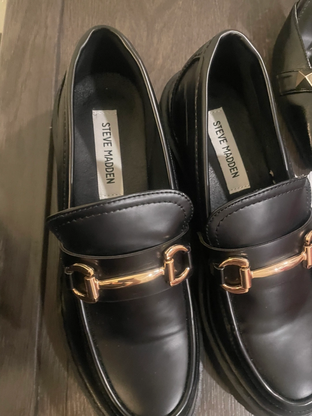 Buy & SellSteve Madden Black LoafersSteve Madden Black Loafers$60Black loafers with gold hardware. Platform soles. Barely used Pick up onlyConditionNewSize8-10BrandSteve MaddenWHERE TO MEETCheck LocationView MapSELLERmariaaAberdeen442 reviews0 chats·0 favorites·9 viewsSEND CHAT TO SELLERHi mariaa! I’m interested in your listing.Hi mariaa! I’m interested in your listing.Get the Karrot app to chatSign In to chat