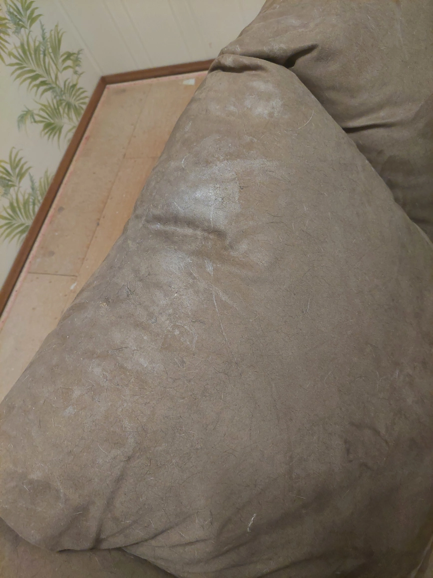 3 seater sofa, no stains or rips. has the legs, but they aren't attached in the pic. we bought this couch for our dogs, so there's slobber marks, but those clean up quite easily if you have one of those cleaners with a wand. ours is broken, or I would have cleaned it for you! the dogs have different seating now, and this couch still has so much life in it, I hope someone can benefit. pick up only.