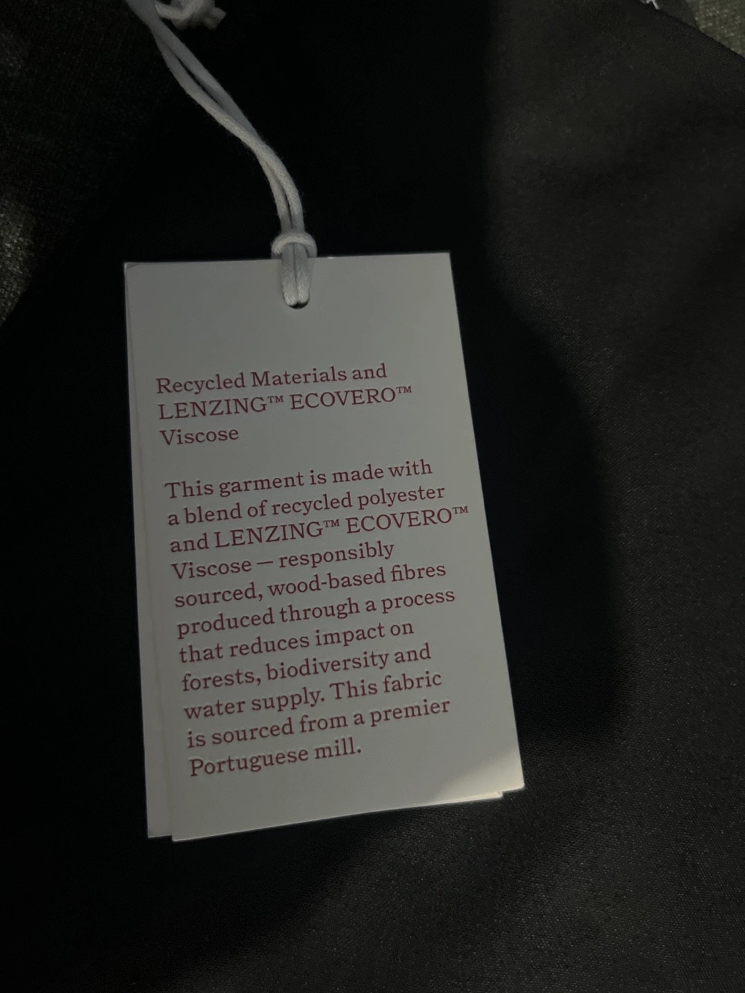 Black mini skirt with a front slit. Size 2. Made with a blend of recycled polyester and Lenzing Ecovero viscose. Sourcing responsibly from a premier Portuguese mill.