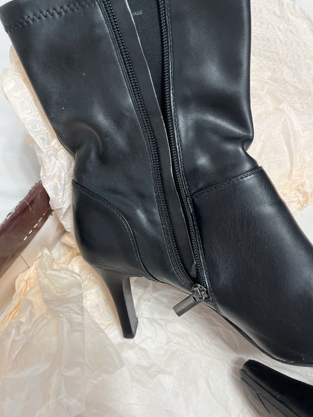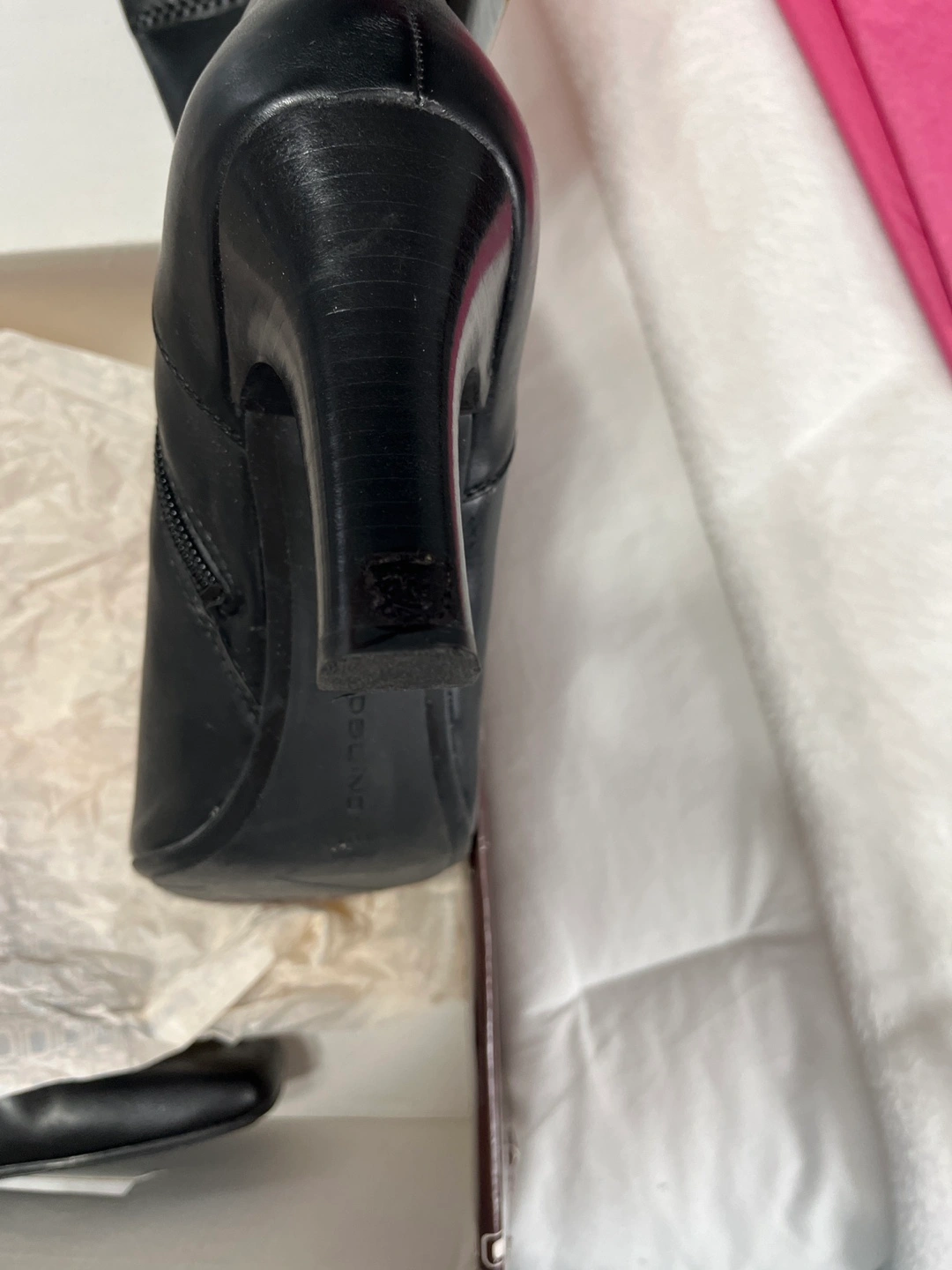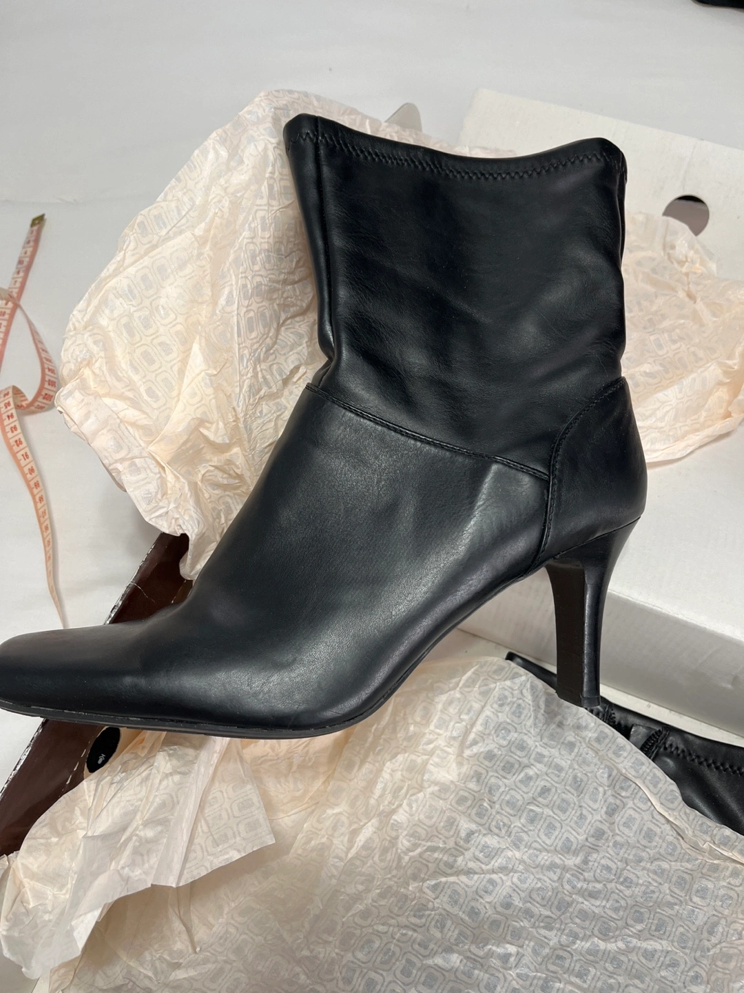 Bandolino Black booties with a stiletto heel. Zipper closure on the inside of the boot. These are size 11. See pics closely one heel is slightly scratched.. Worn very few times. These are very comfortable. Heel is 2.5 inches high Located on 91 street and 34 ave jackson heights pick up not available from 11-4 to 11-18