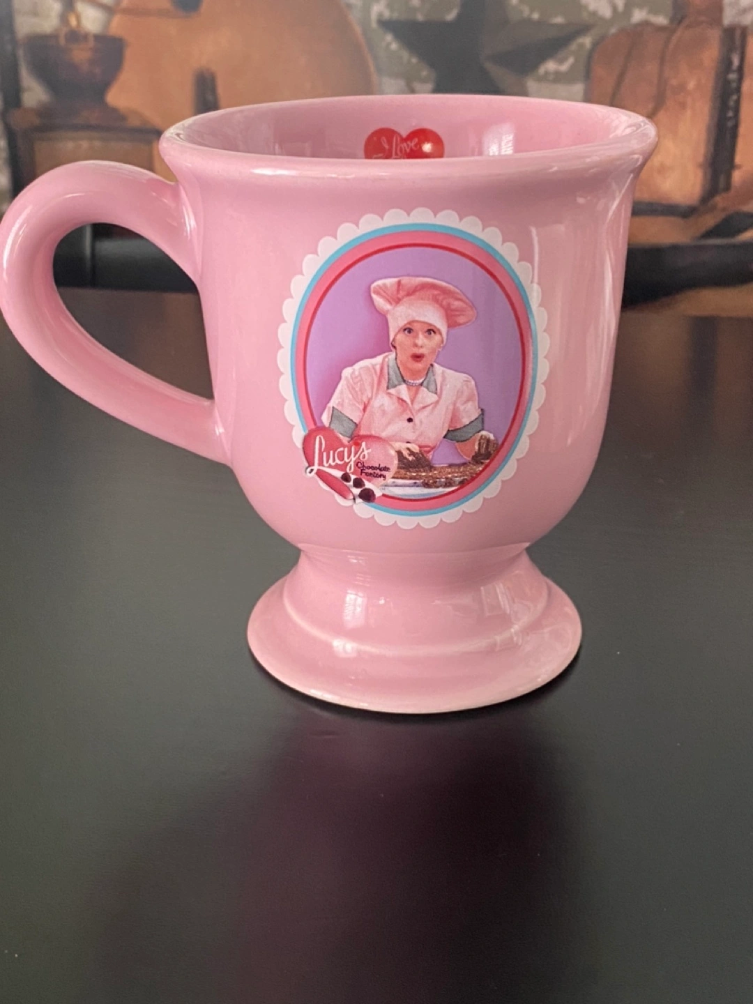 Pink ceramic mug with I Love Lucy logo and images of Lucy Ricardo. It has a handle and a pedestal base. Lucy Pictures on both sides of the mug, microwave safe. No chips. Never used. Excellent Condition! Pick up Cawthra and Lakeshore area in Mississauga.