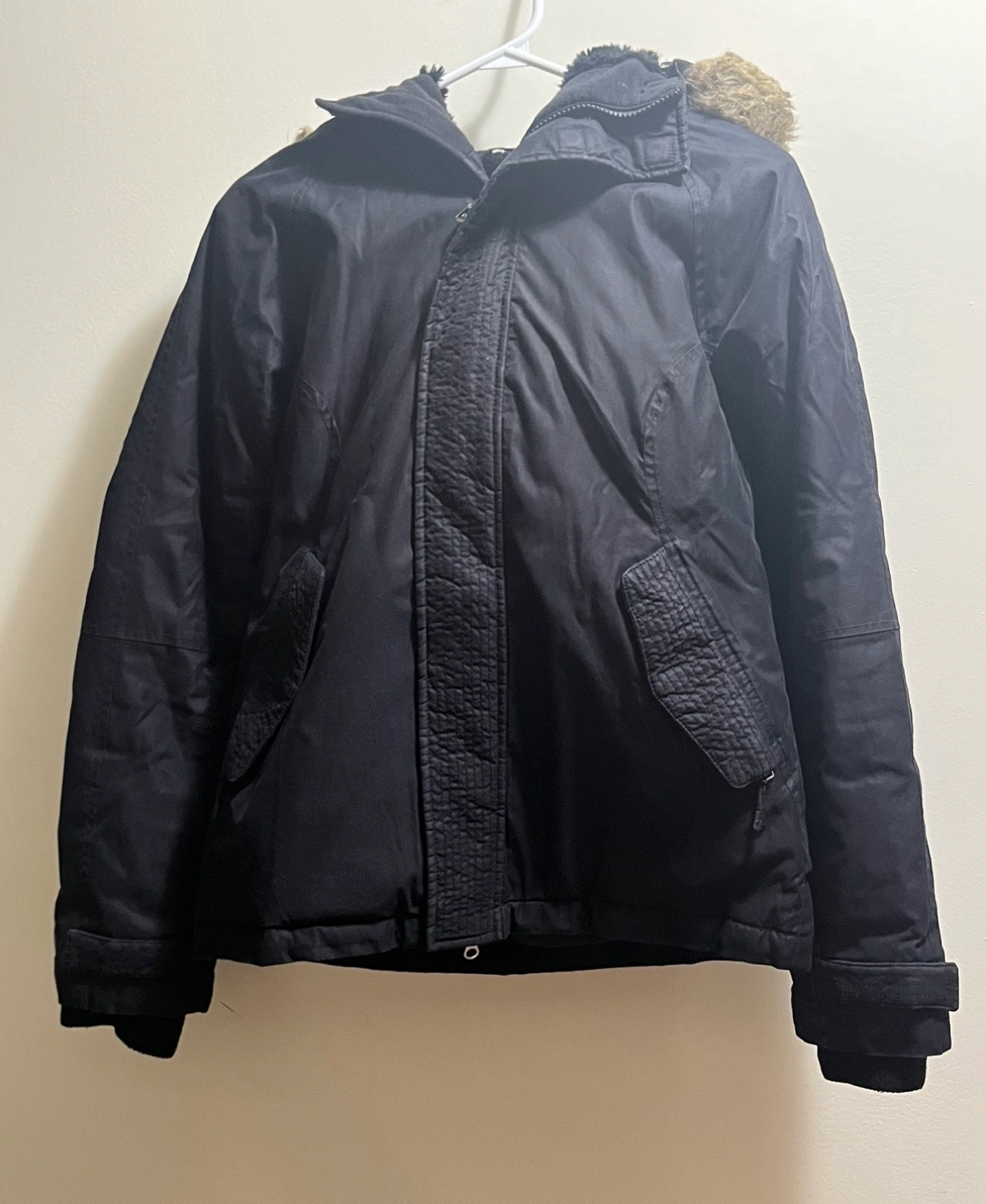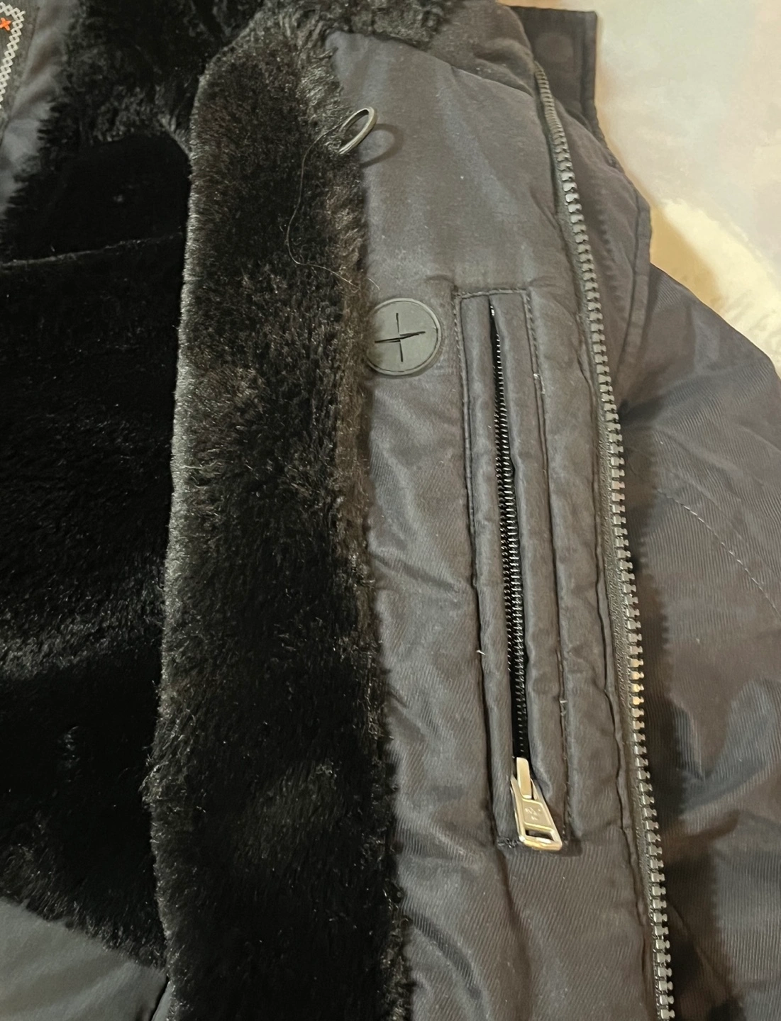 Merino wool-blend cuffs, an adjustable fur trimmed hood and a faux-fur-lined body add extra coziness.