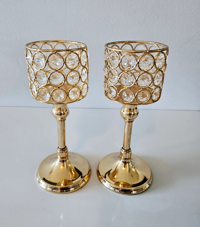 Set of two mini gold candle holders with crystal accents. Great for adding a touch of elegance to your home decor. Pick up in Thornhill near Bathurst and Steeles. Xpstd.