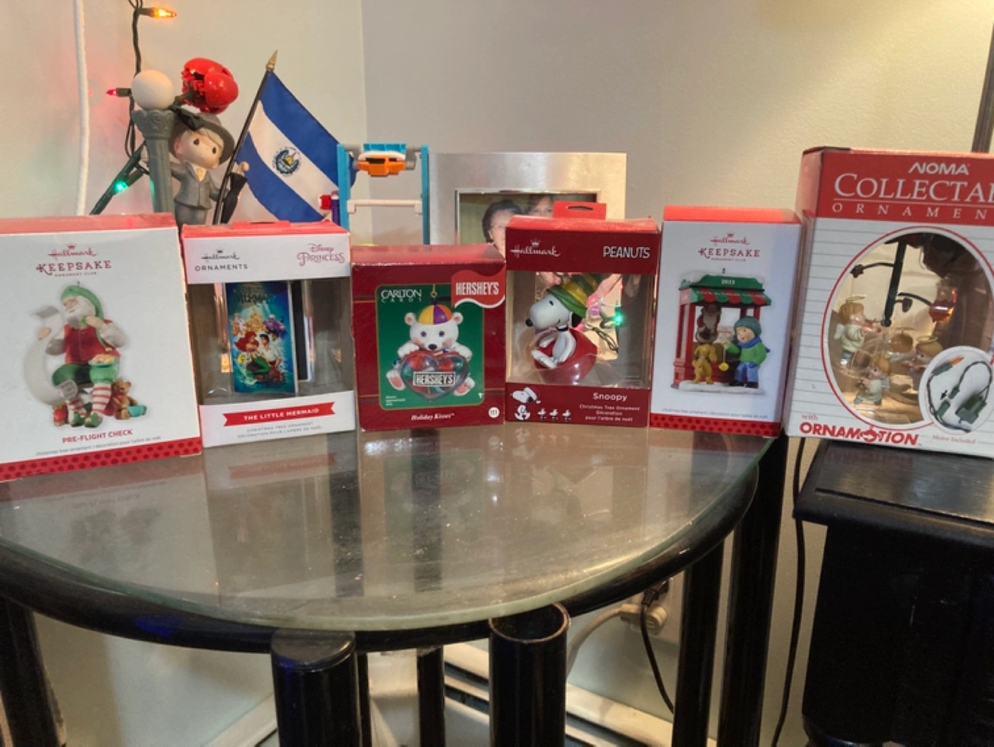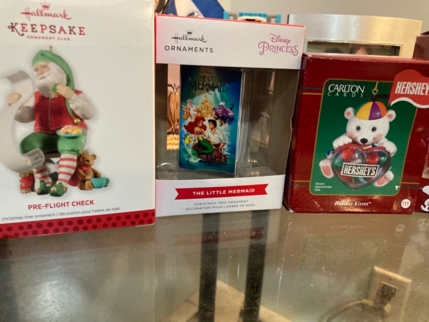 Assortment of Christmas tree ornaments. Includes Hallmark Keepsake ornaments and other brands.