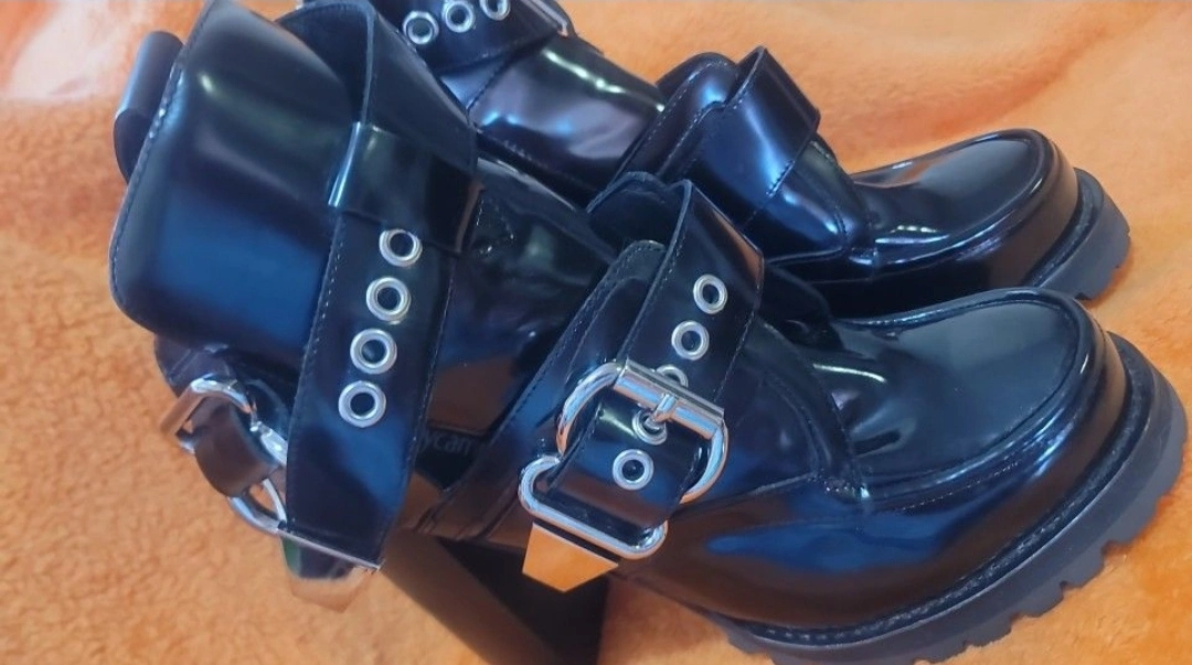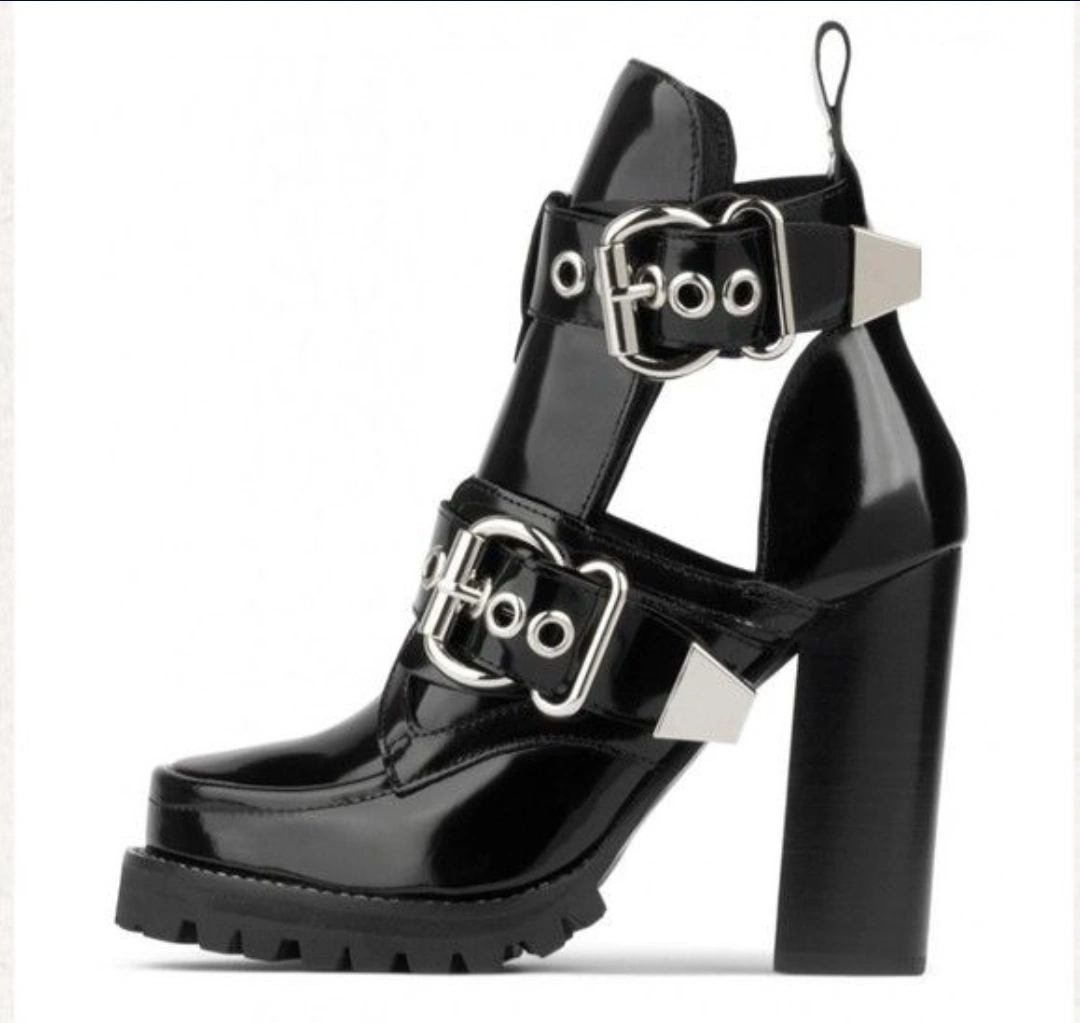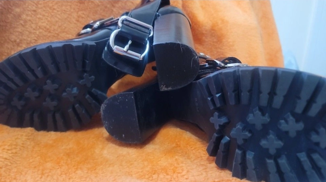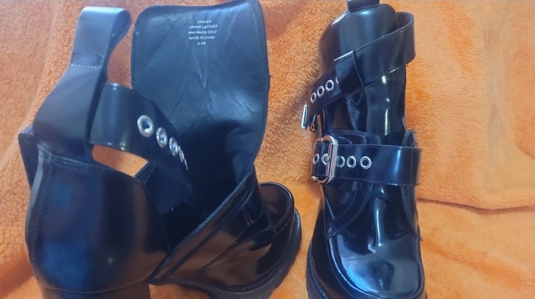 1000+Good condition 4.25" heel, 0.25" platform cut out lug sole heeled boot Size 8.5