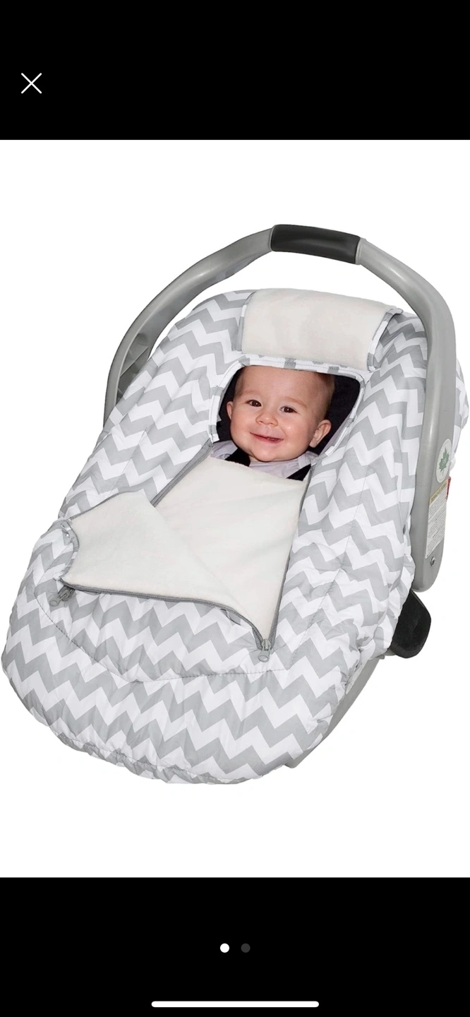 817Grey and white chevron car seat cozy, with fleece lining.