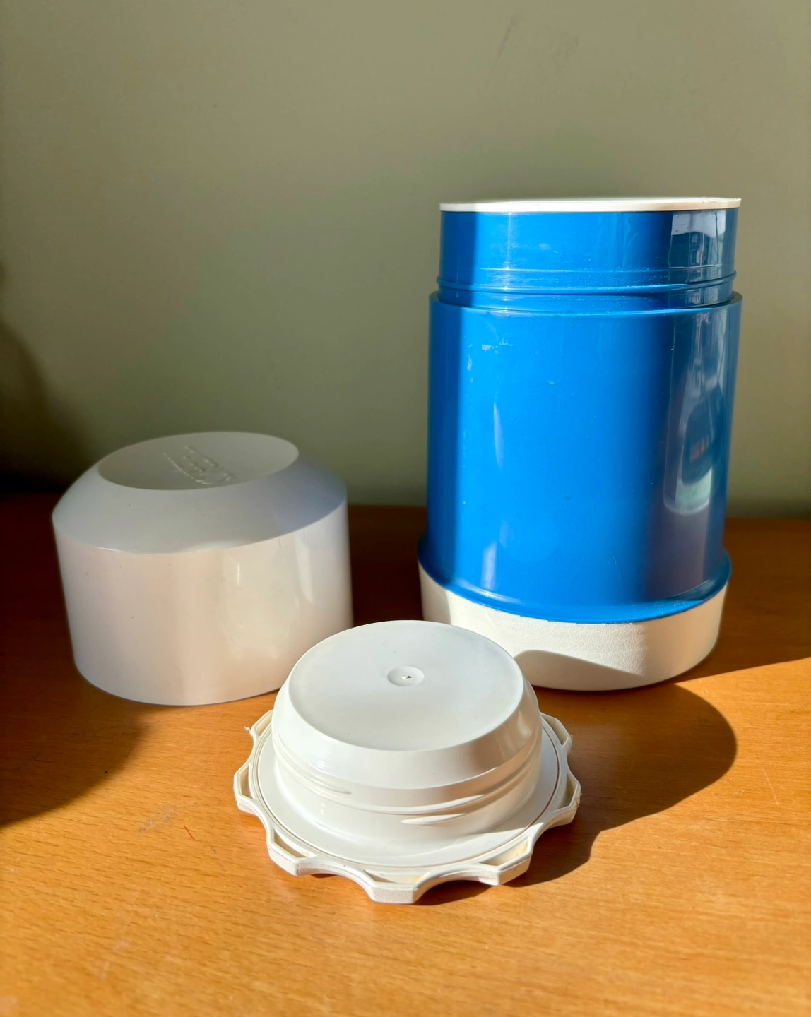 1000+Blue and white 10 oz Thermos food jar. Includes lid and a separate cup. The jar has a handle and is in very good condition. Click on my name above to see my other listings and pickup locations.