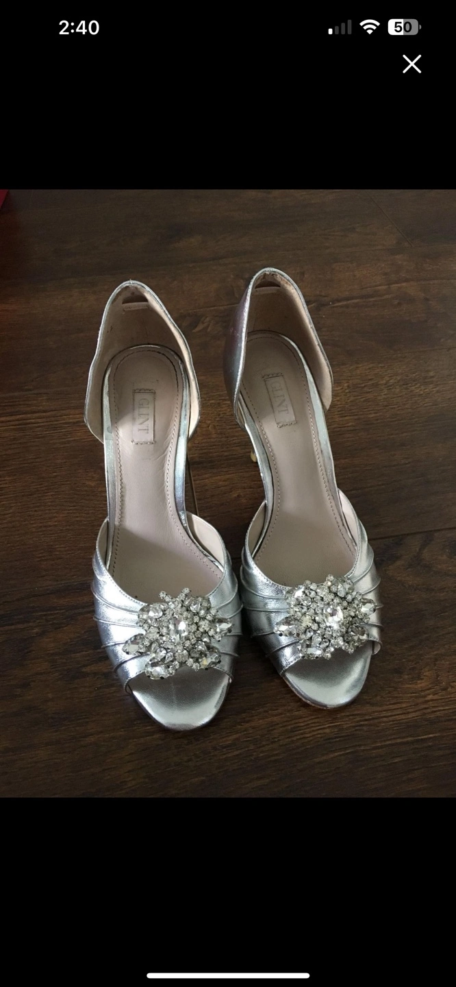 Silver Rhinestone Peep Toe Heels size 7 comes with box