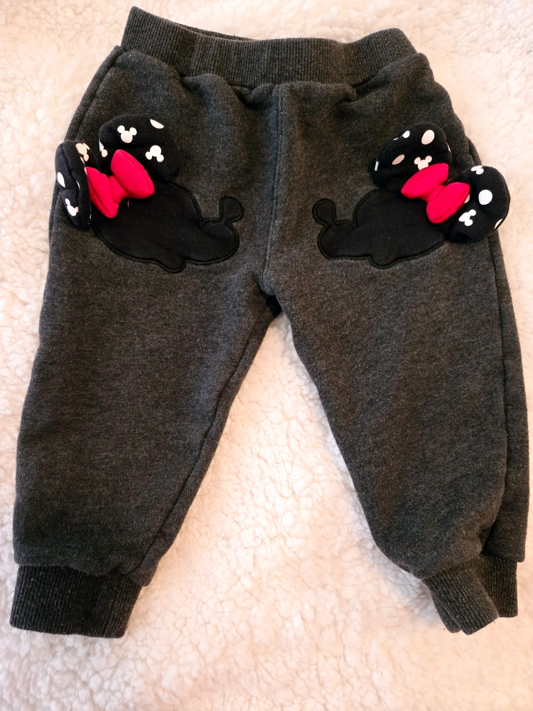 Grey sweatpants with Mickey Mouse design on the back pockets. Size 90.