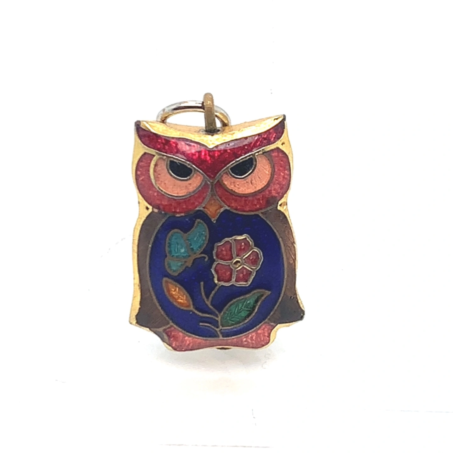 Cloisonné Vintage Enamel Owl Charm Pendant