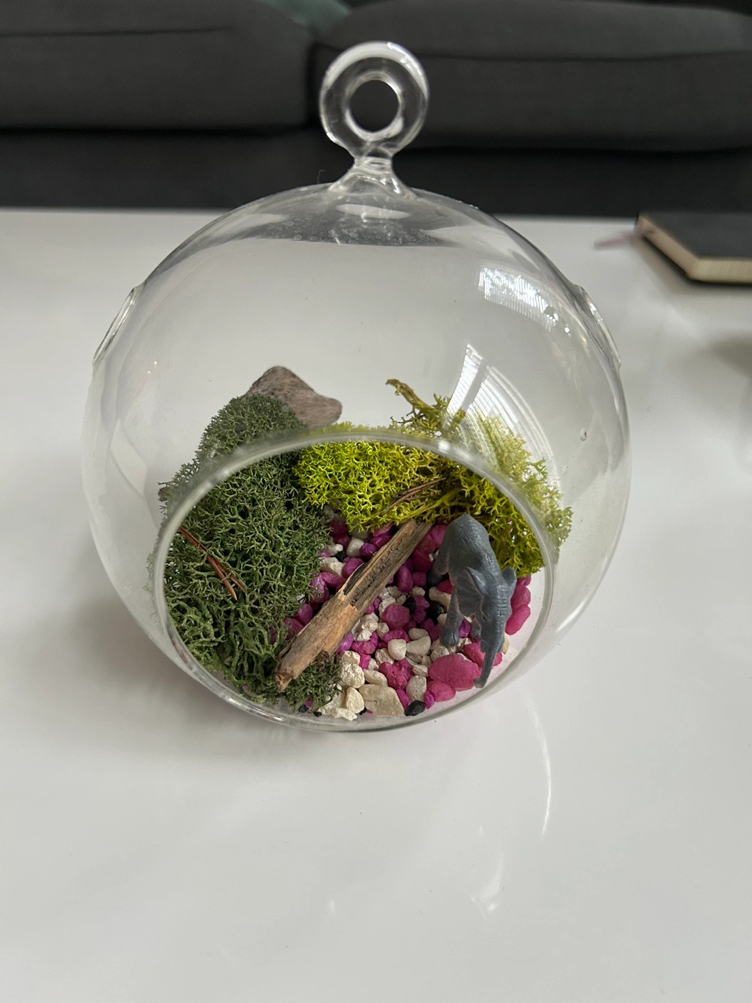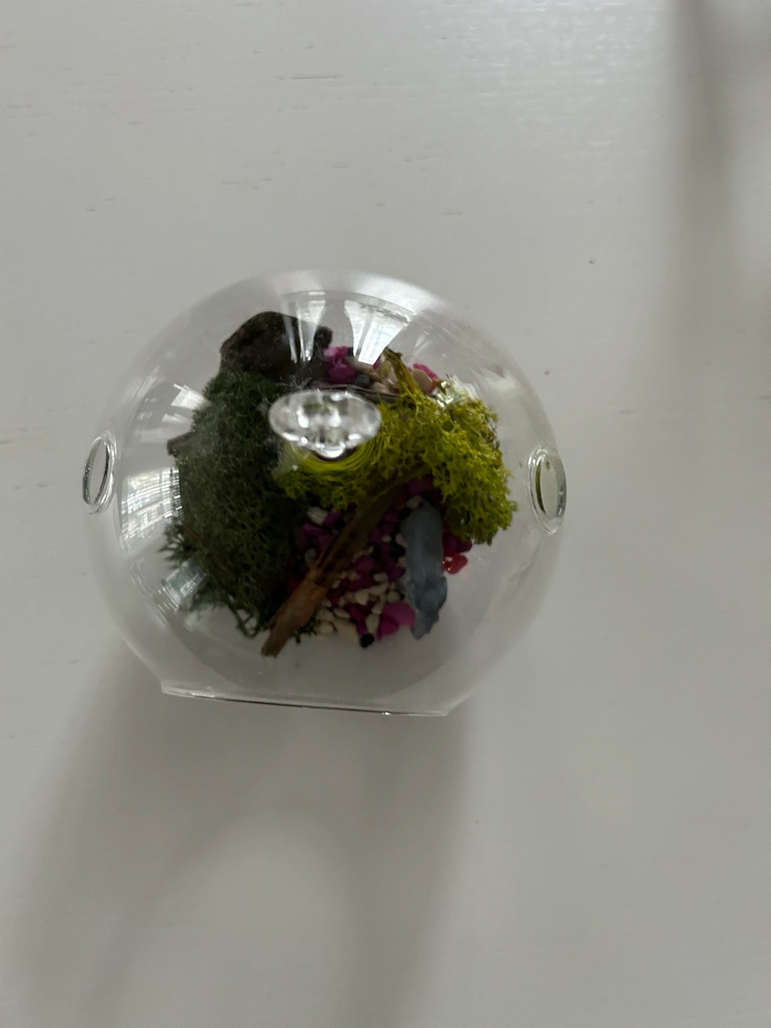 425Small glass terrarium. Filled with moss, rocks and a small branch. Comes with a hook to hang it. Pick up near North York Centre station