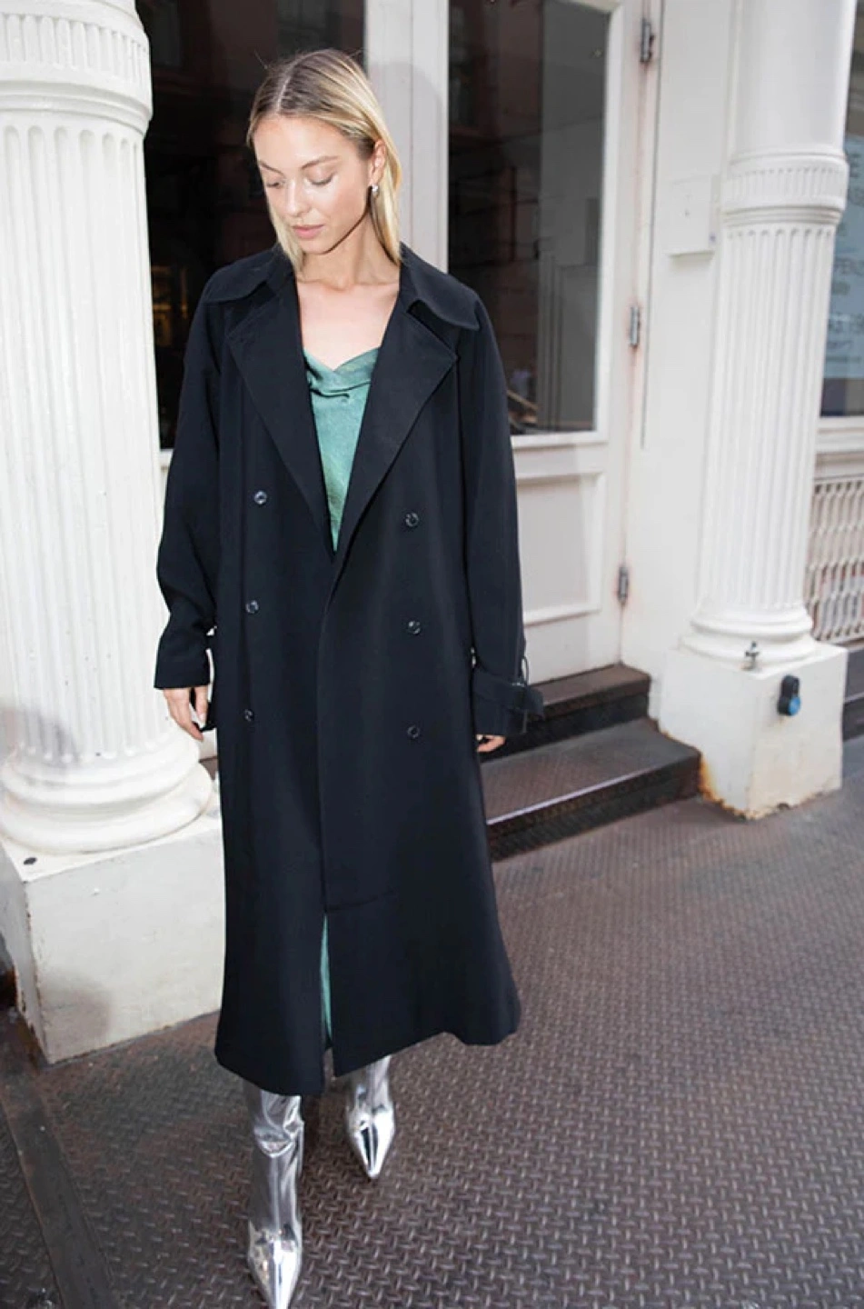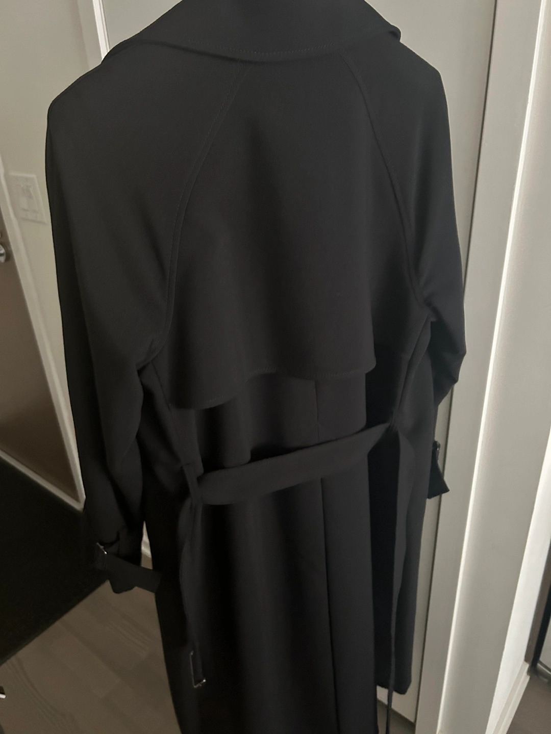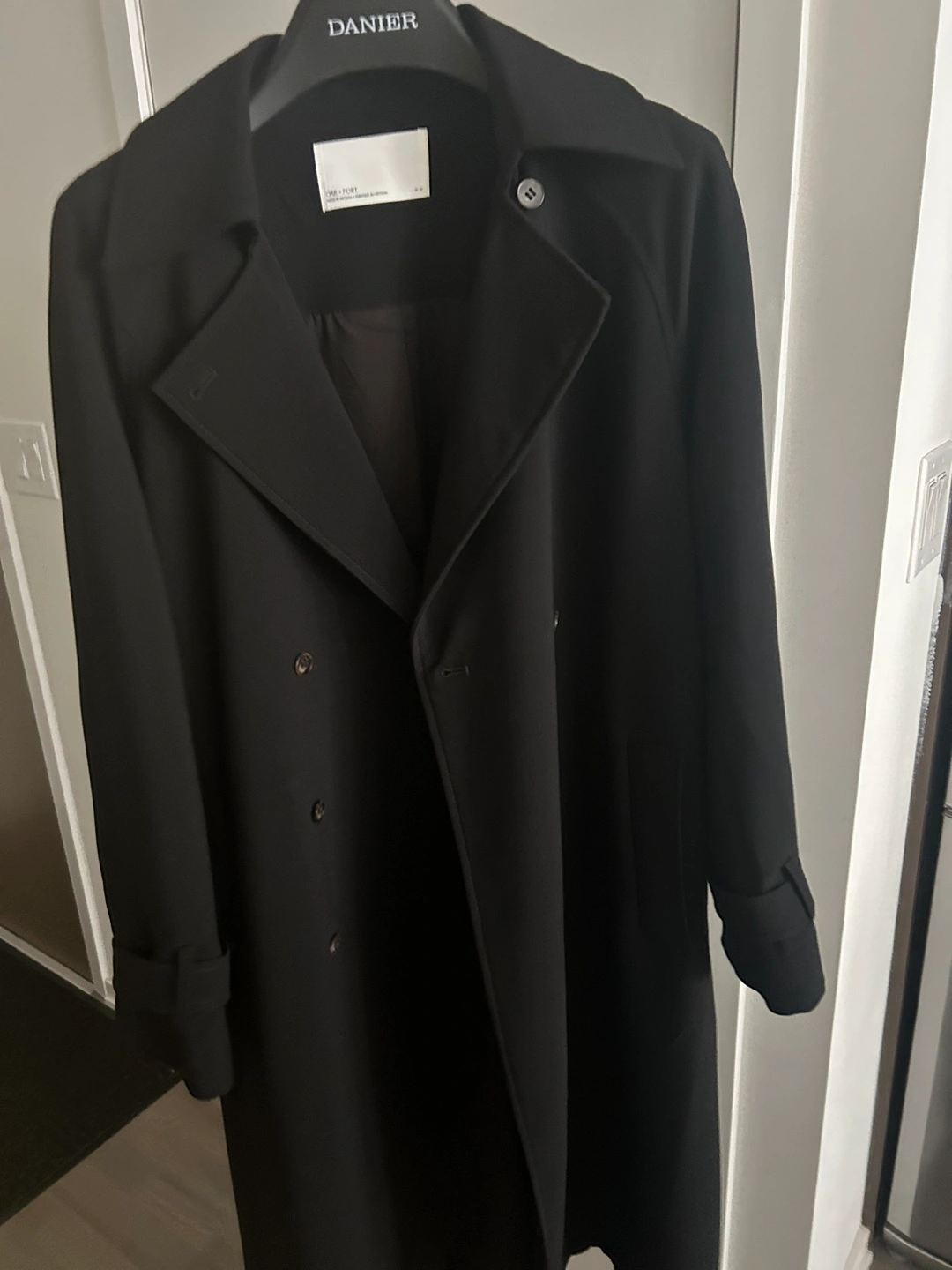 377Oak + Fort OVERSIZED TRENCH COAT Size XS Black color Perfect condition Original price $212+ after tax DESCRIPTION This wardrobe staple is made in an oversized fit for easy layering. It has double-breasted front, notched lapels and a belt to cinch at the waist. A timeless silhouette that looks good when paired with any outfit, wear yours throughout this season into the next. DETAILS Double-breasted front. Belt with buckle at waist and sleeves. Notched lapels. Back vent and slit. Side pockets. FIT & SIZING Oversized fit Fits oversized. Sizing down is recommended. 46.5" length based on size S Model is 5'9" and is wearing a size S