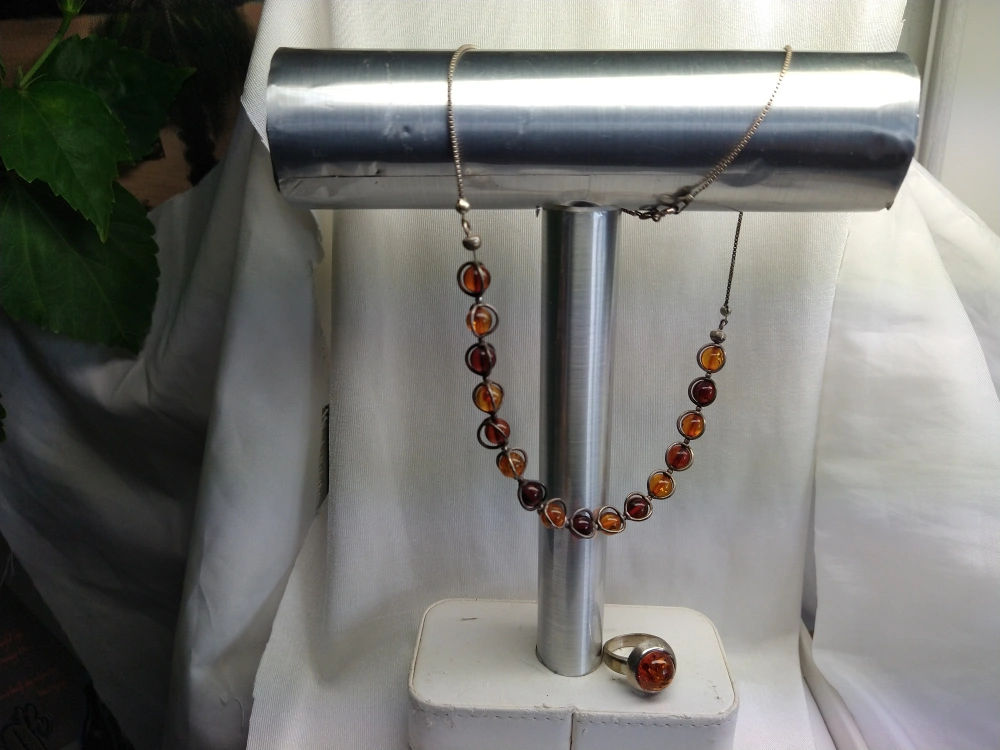 Amber and Sterling Silver Necklace and Ring Set🥕