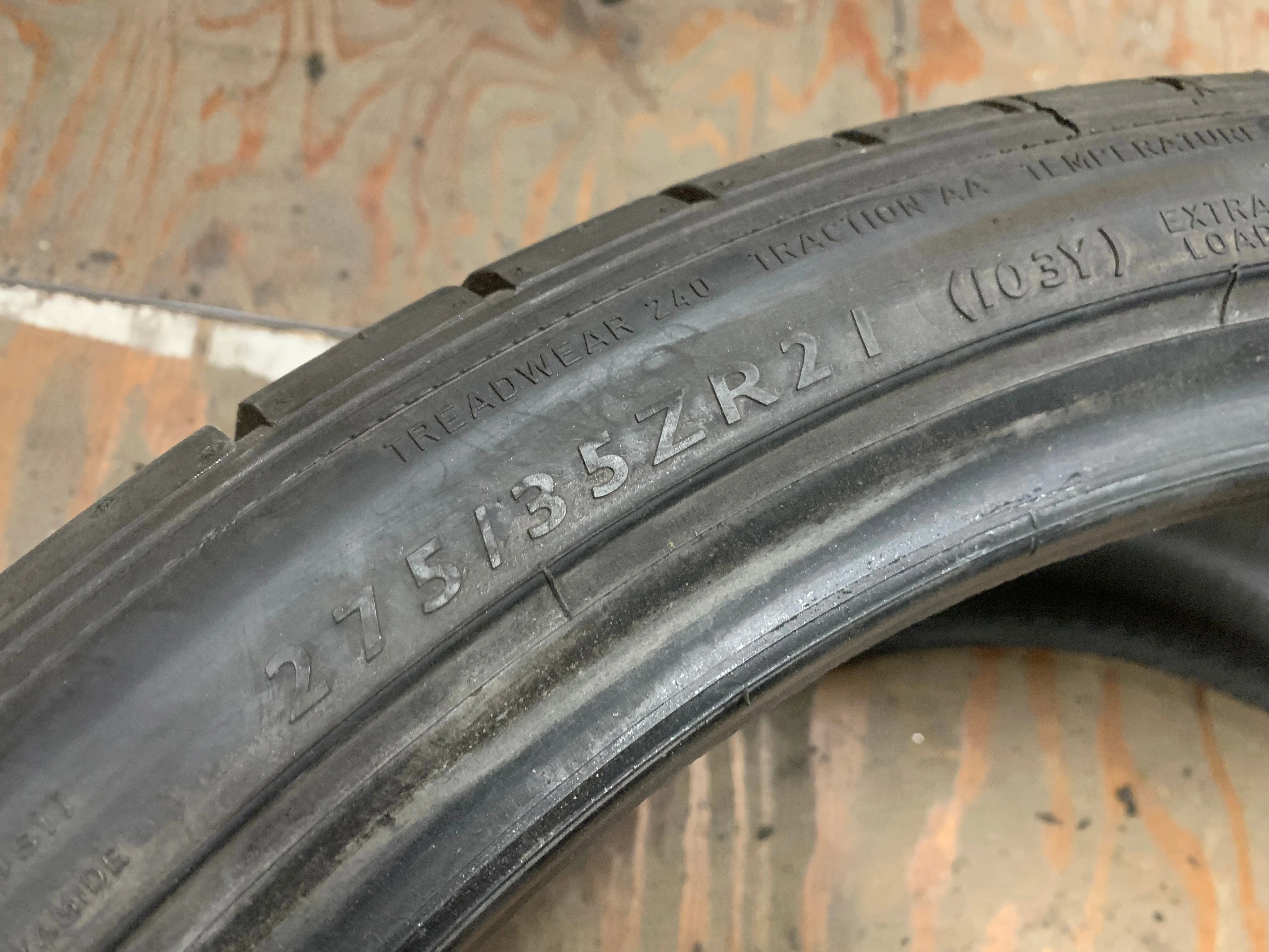 size 275/35/21 103Y XL Dunlop SP Sport Maxx GT with no repairs and 80% tread