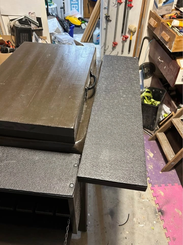 Just made this one to see if it is worth making and selling. Great for a man’s cave or beside your bbq. Next one will be stained wood, but this has to go first. No room in my garage. Has place for wine and other glasses.