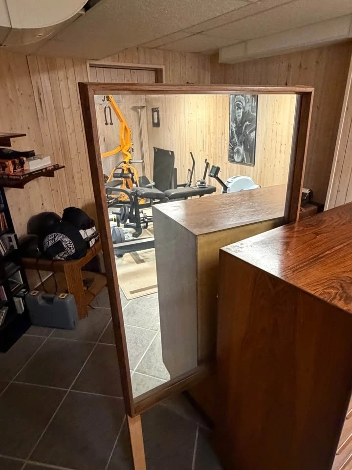 Includes a Tall Dresser with a tall, detachable mirror (no cracks or glass discoloration). Dimensions: 63" L x 18" W x 29" H. It has multiple cabinets and drawers.