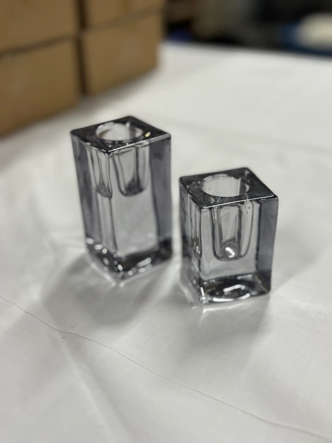 Selling a set of two square glass candle holders. They're in great shape and would look lovely on a table or shelf. Perfect for adding a touch of elegance to any room!