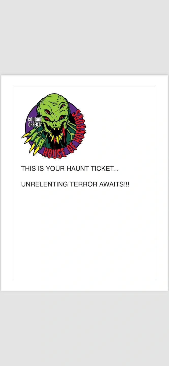 2 haunted house tickets for Cougar Creek House of Horrors