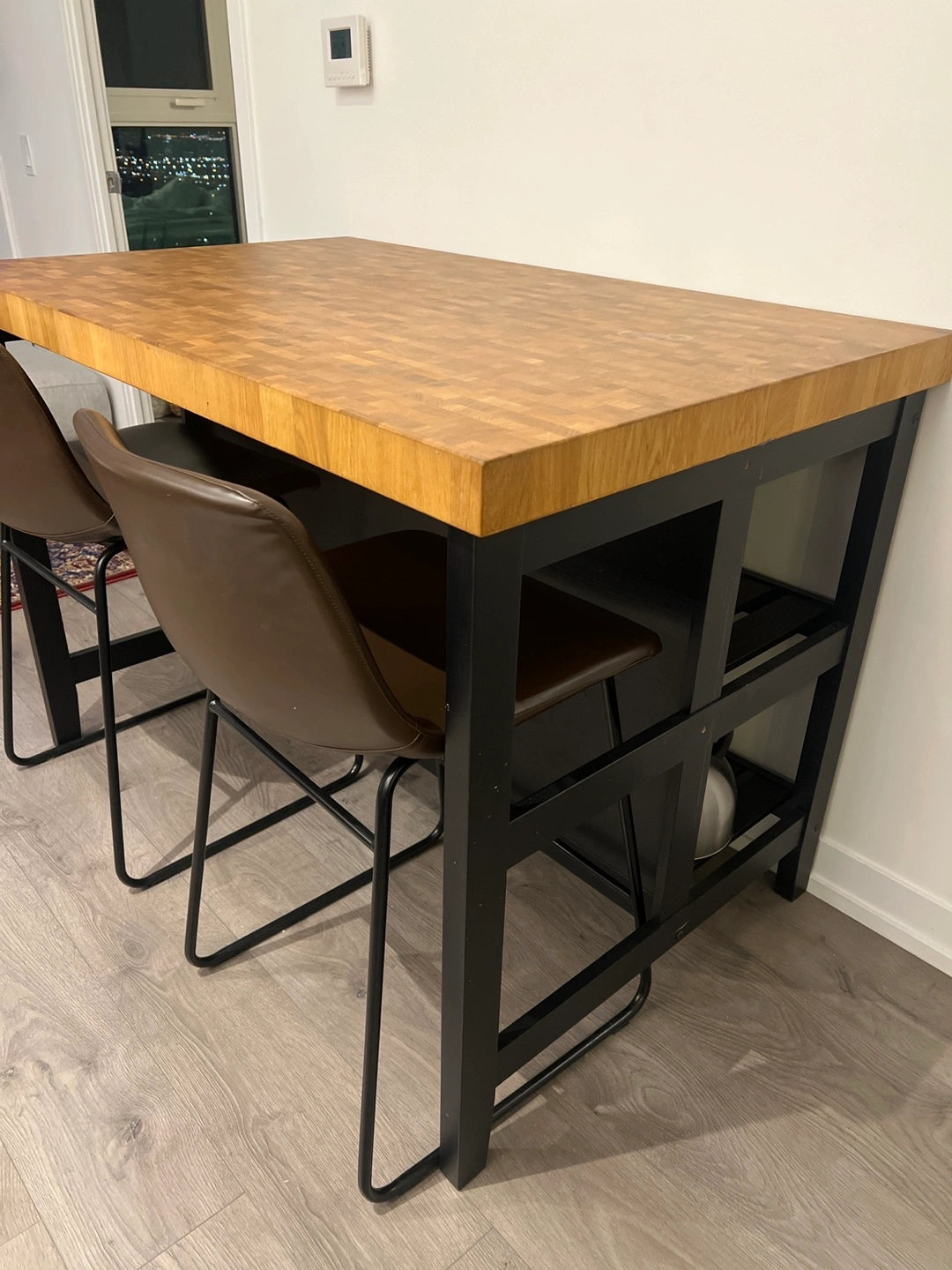 IKEA VADHOLMA Kitchen Island - Black/Oak *includes 2 chair*