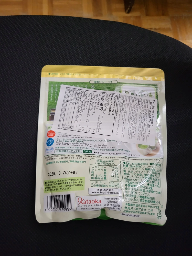 New & unopened Matcha milk powder, made in Japan. Comes in a resealable bag. It is too sweet for me, maybe someone will enjoy it!