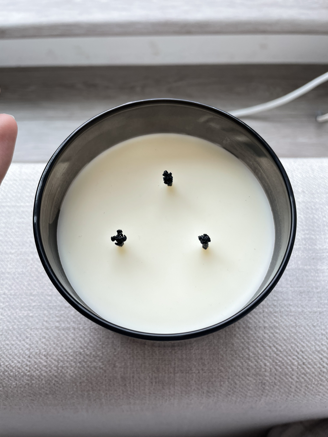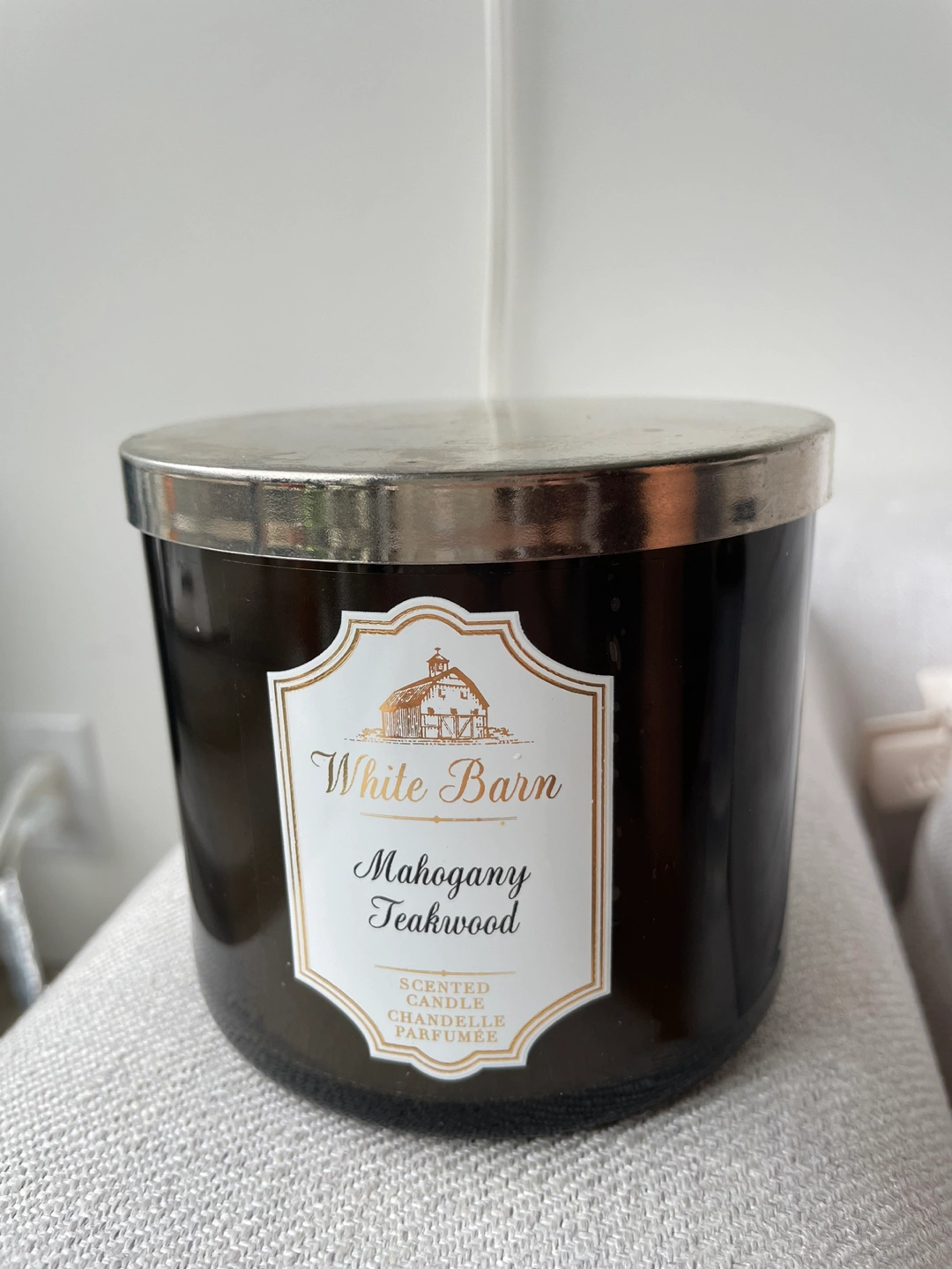 31Never lit, very fragrant, soy wax blend. Fragrance description on website: “Rich Mahogany, Black Teakwood, Dark Oak, Frosted Lavender with Natural Essential Oils”