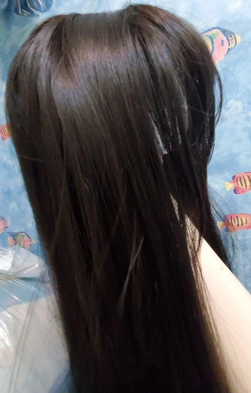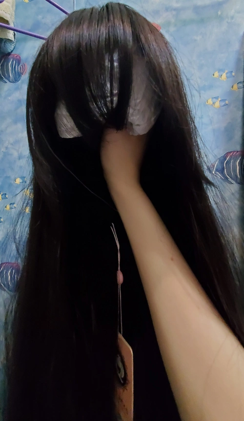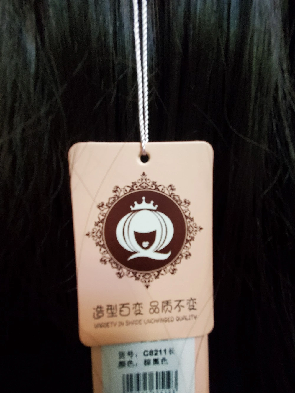 Selling a synthetic wig in a black-brown colour. Great quality. Doesn't shed too much. New, never worn, just tried on once. Has a fringe and some shorter pieces to frame the face in the front. Length is approx 67 cm. Comes with a wig cap and hairnet to store the wig. $30