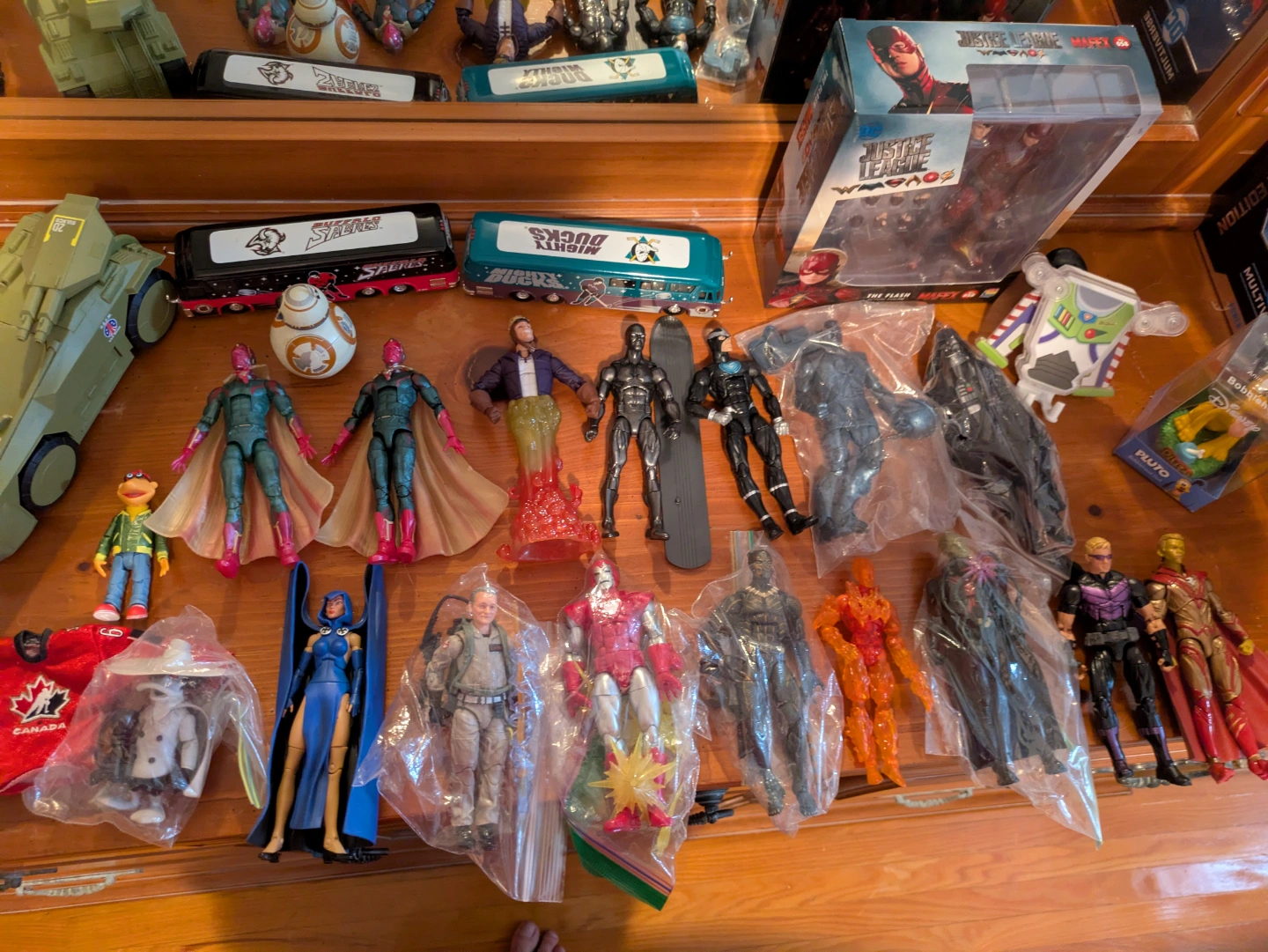 Large lot of action figures. Many are DC or Marvel related. Includes some other characters. All in good condition. Some may be missing accessories. Various amounts of action figures. Can sell in a lot or separate. Make an offer. I will list if anything has sold. Request closer up pictures if you want. will accept trades for dvd movies, tpb, vinyl LPs, DC 3.75 figures and movie collectibles. Pick up is in markham. I offer shipping at extra cost.