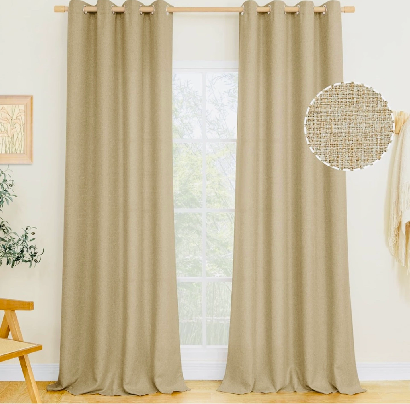 Faux Linen Curtain Panels, 52” W x 84” L $18 per Set of 2