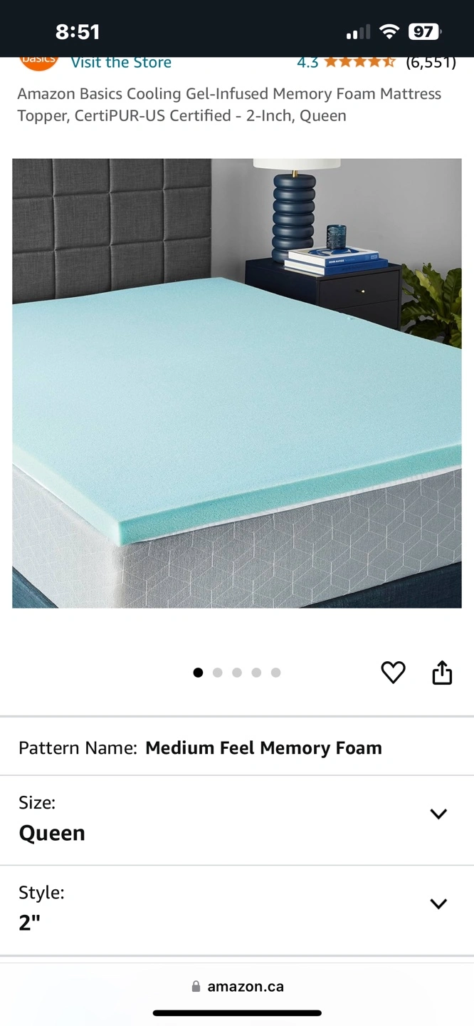 Queen size, 2 inch thick, gel-infused memory foam mattress topper. Certified by CertiPUR-US…only $90