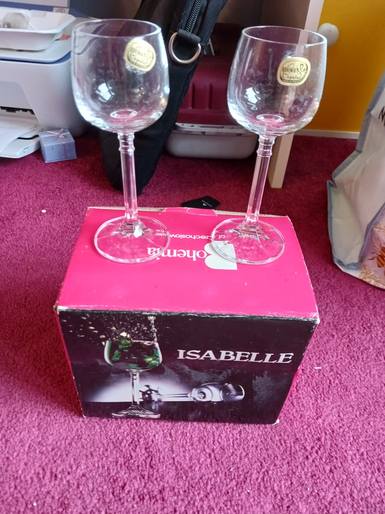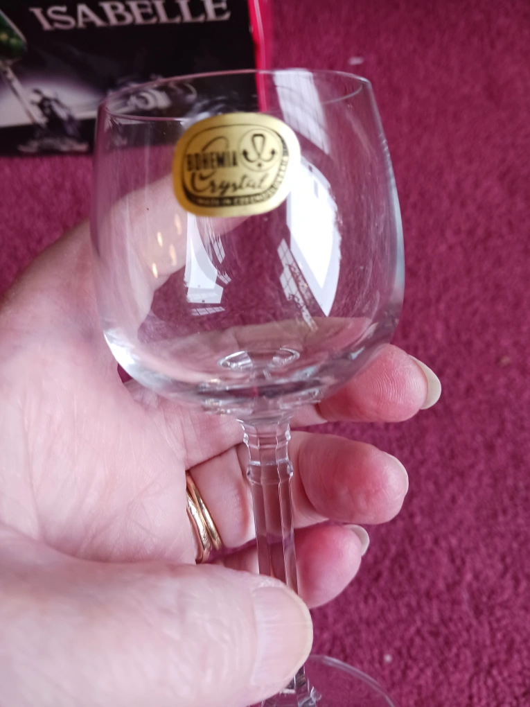 401Set of 6 Bohemia Crystal Isabelle liqueur glasses. In original box.