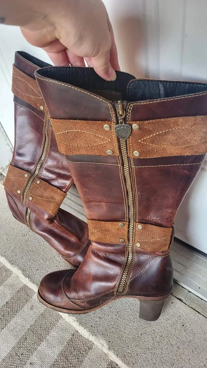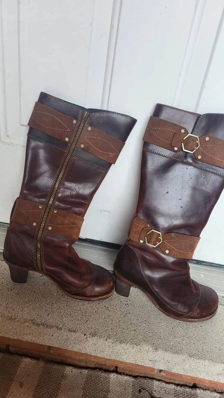 Authentic leather Tim's with a chunky heel. size 8.5 - unfortunately I need a wider calf boot. Still have alot of life left in them .