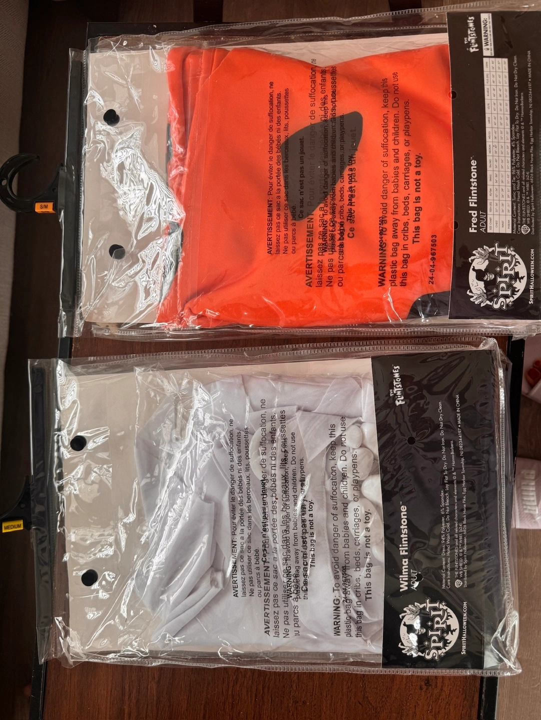 Adult size Fred and Wilma Flintstone costumes. Both are new and have been worn once for a few hours. Fred’s costume includes tie!