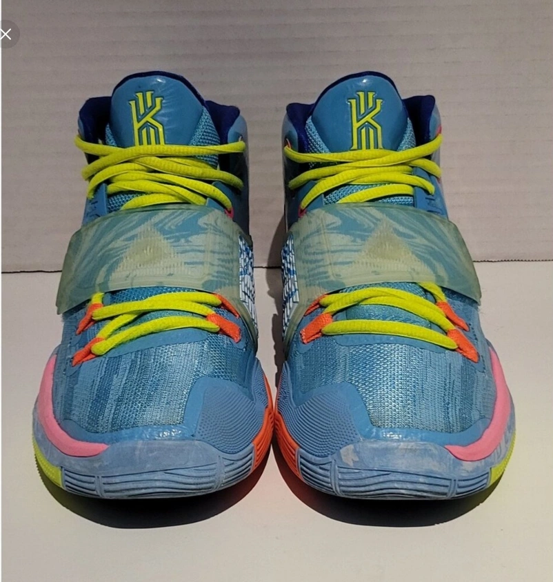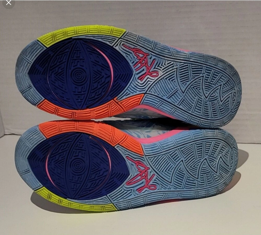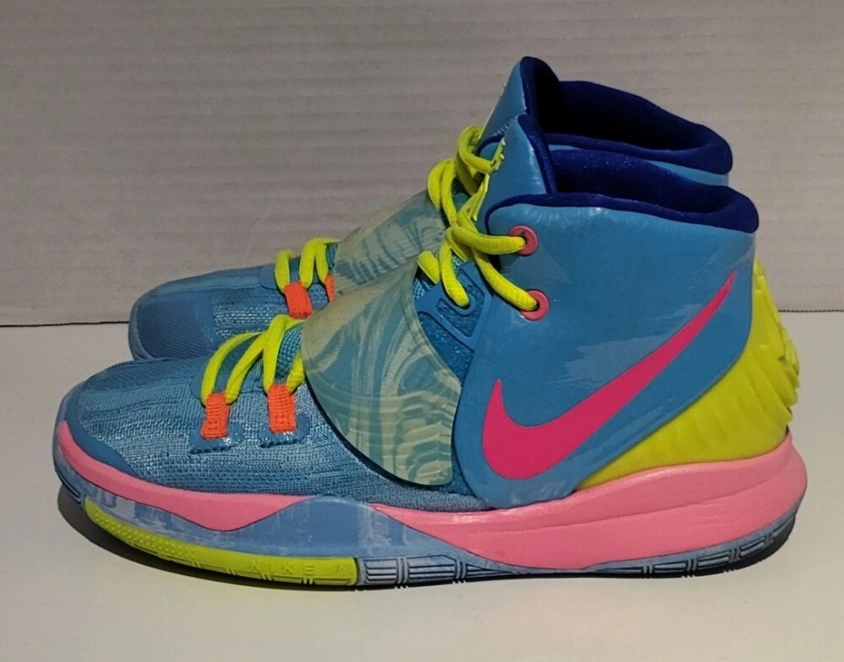 Dubbed the “Pool” colorway, this Nike Kyrie 6 starts off with Baltic Blue all throughout the base that has been constructed out of mesh and patent leather. If that bright shade of blue wasn’t enough for you then Nike has added pink, orange, and volt all throughout the shoe giving it a real 90’s vibe.