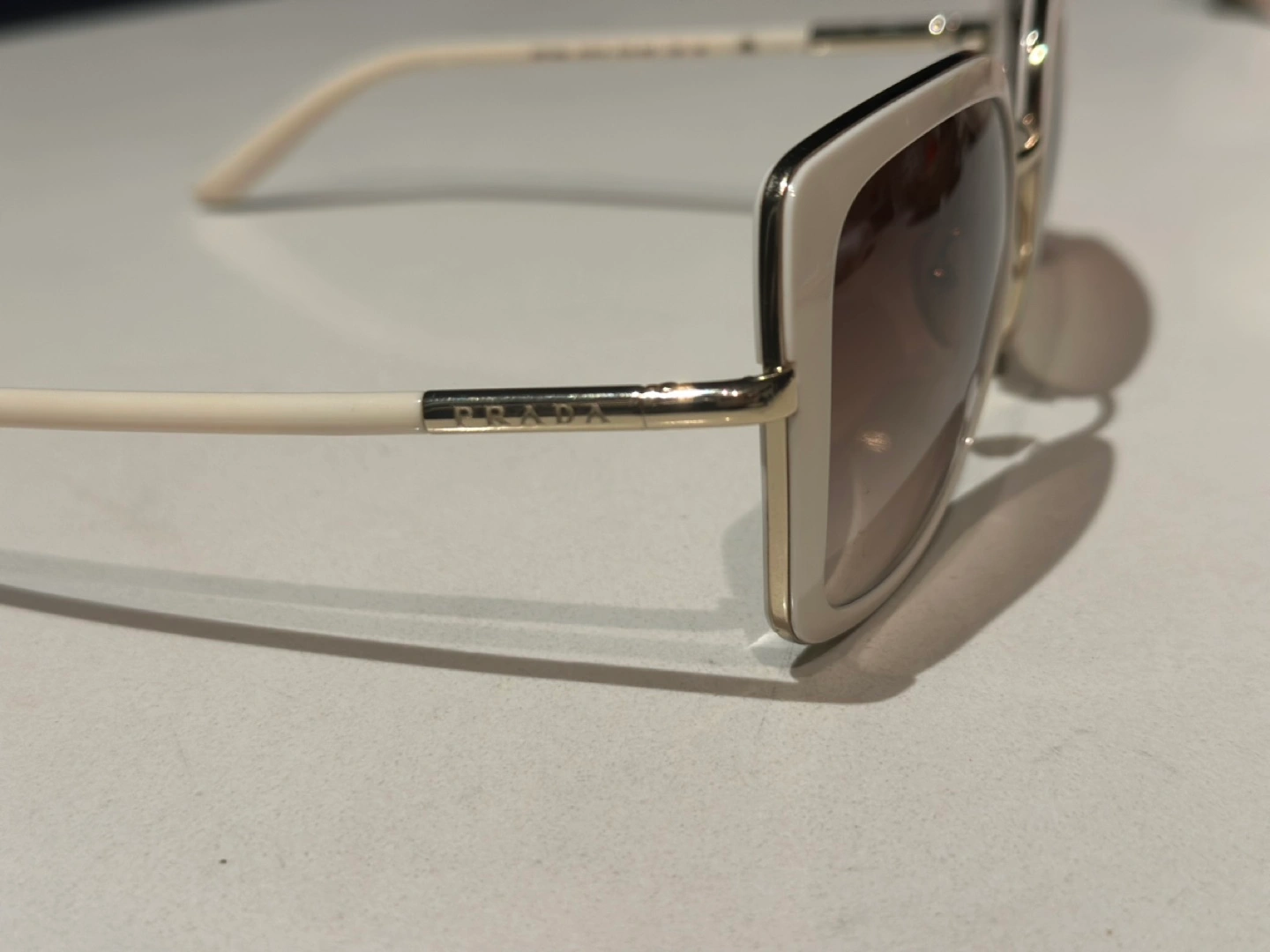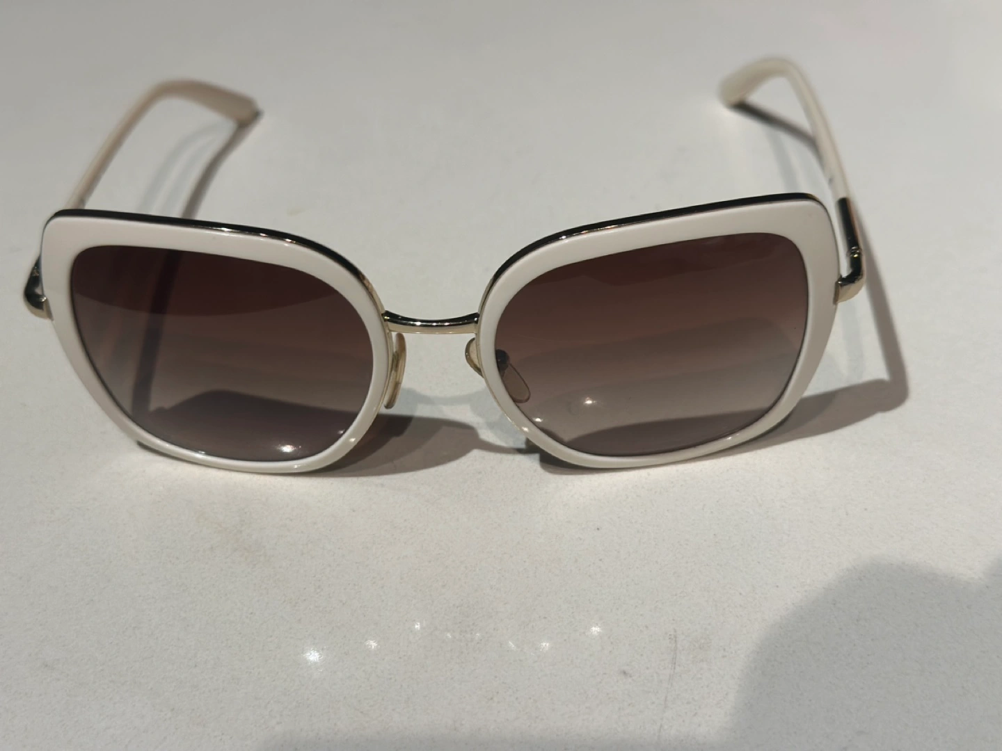249White and gold sunglasses with brown gradient lenses. Come with a case.