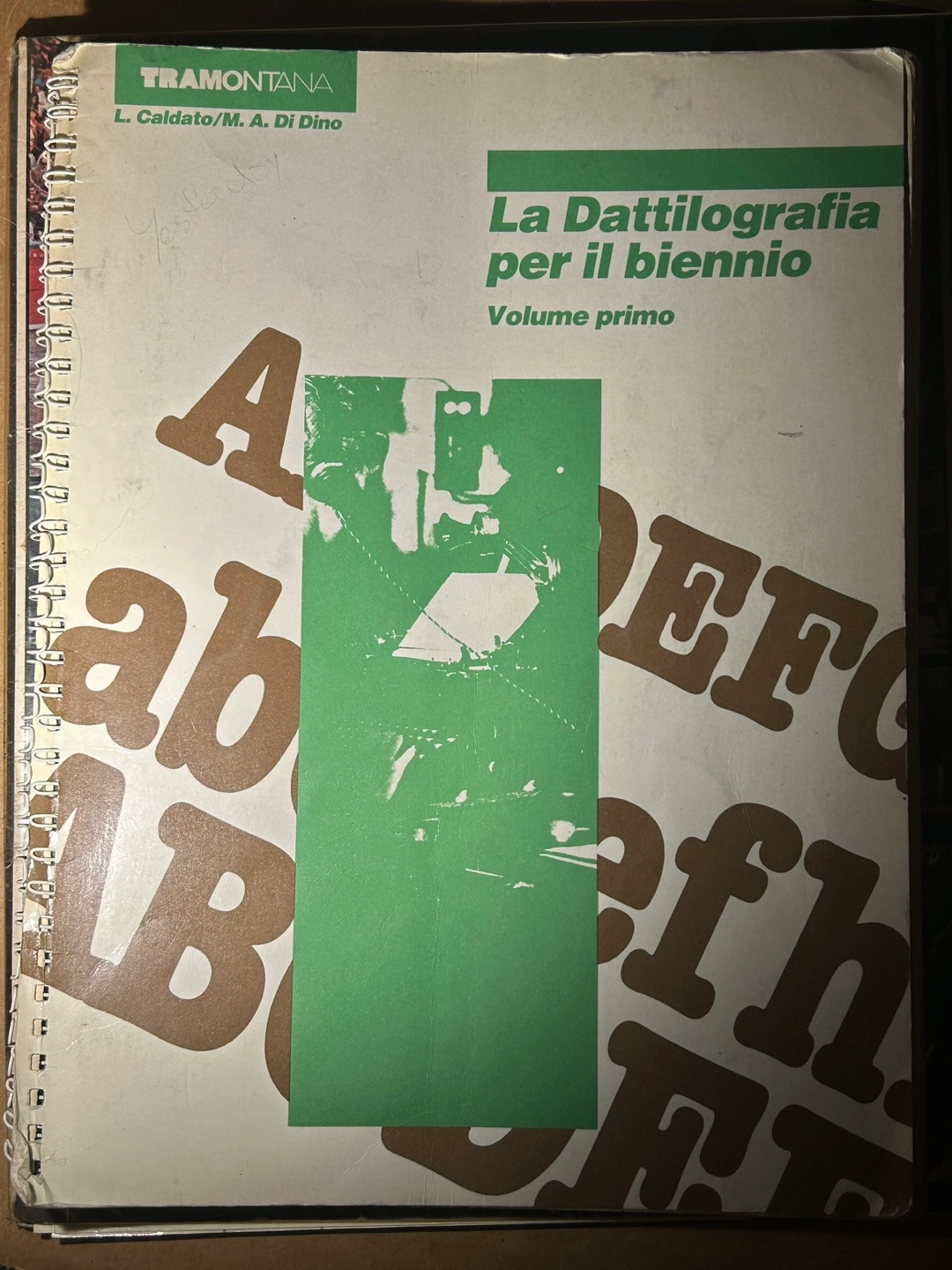 Vintage Italian textbook. Volume primo. Features large letters on the cover.
