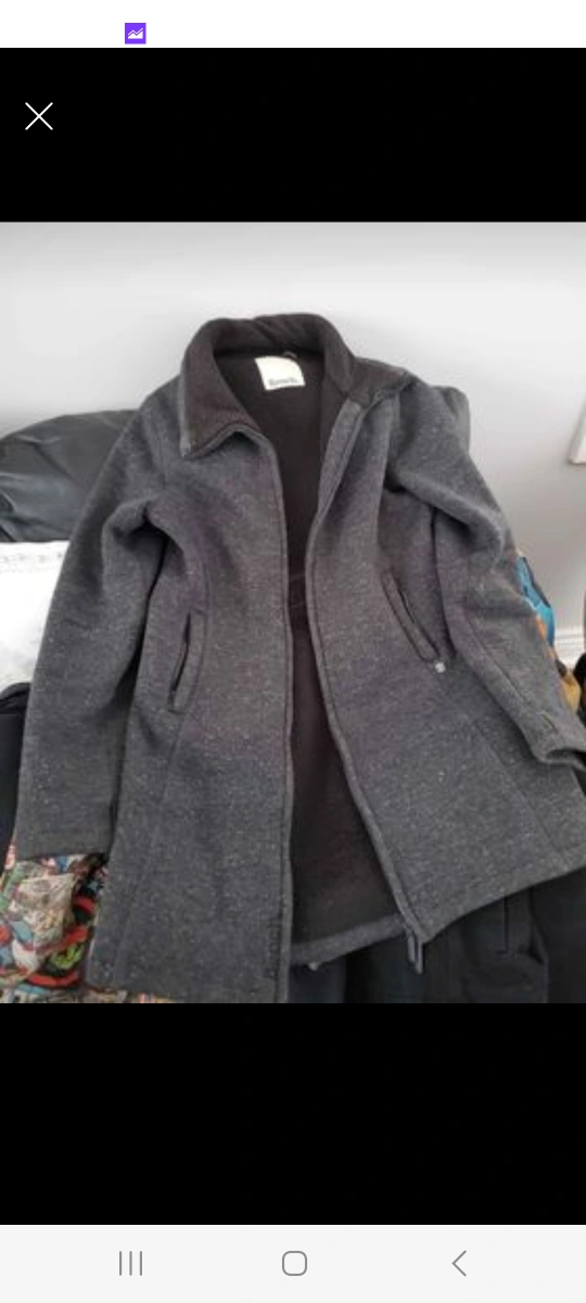 68Grey fleece lined winter coat with zipper closure and pockets. Size XL.