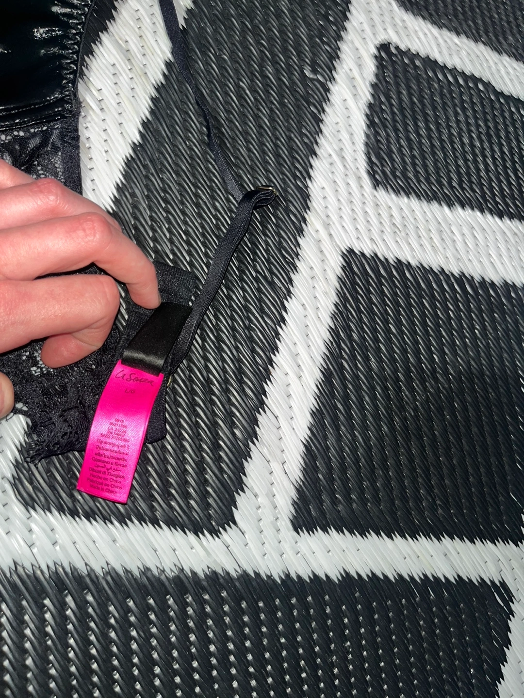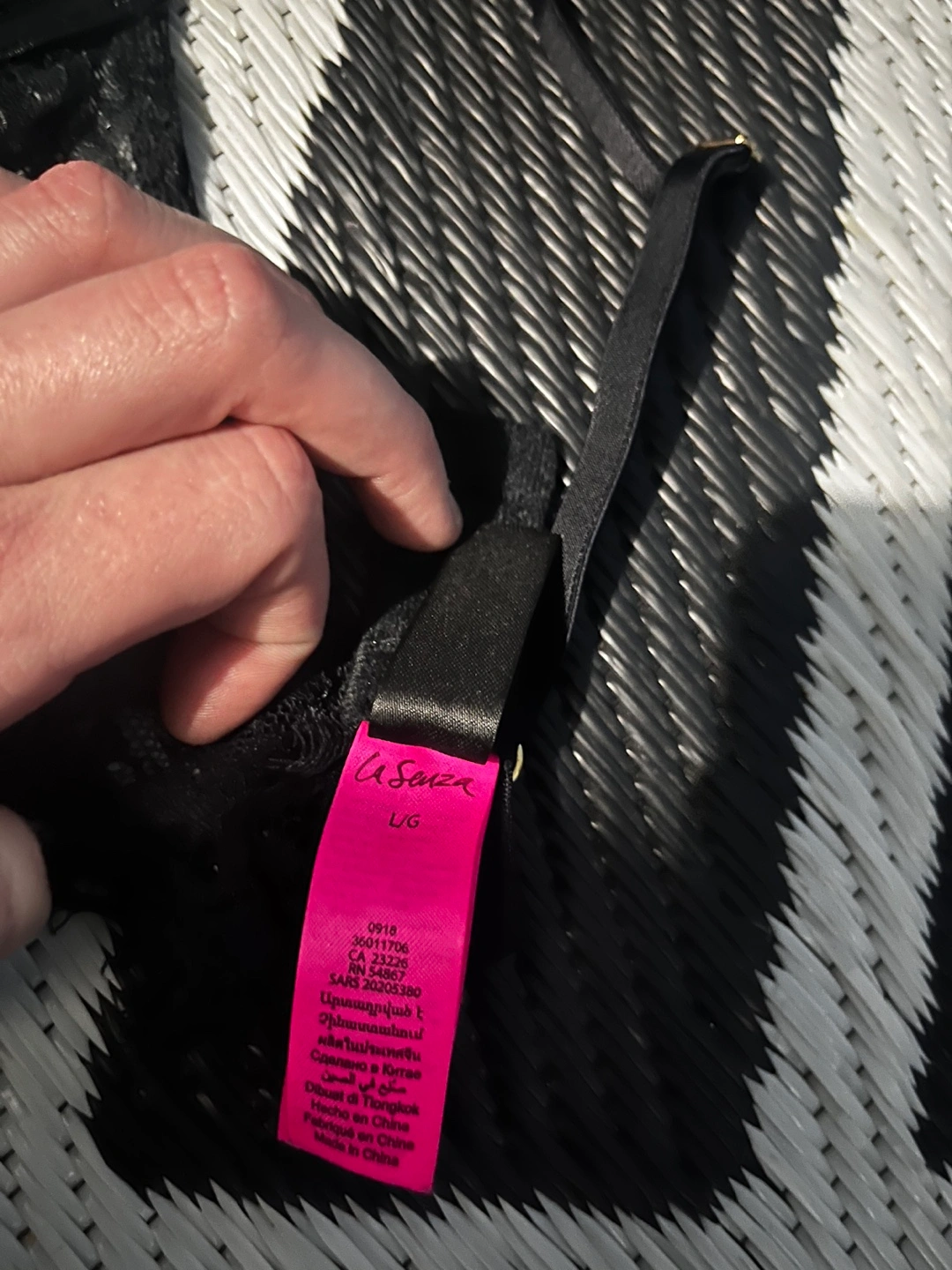 Black lace bra with adjustable straps and a hook and eye closure. Size L/G.want gone this week pick up only please