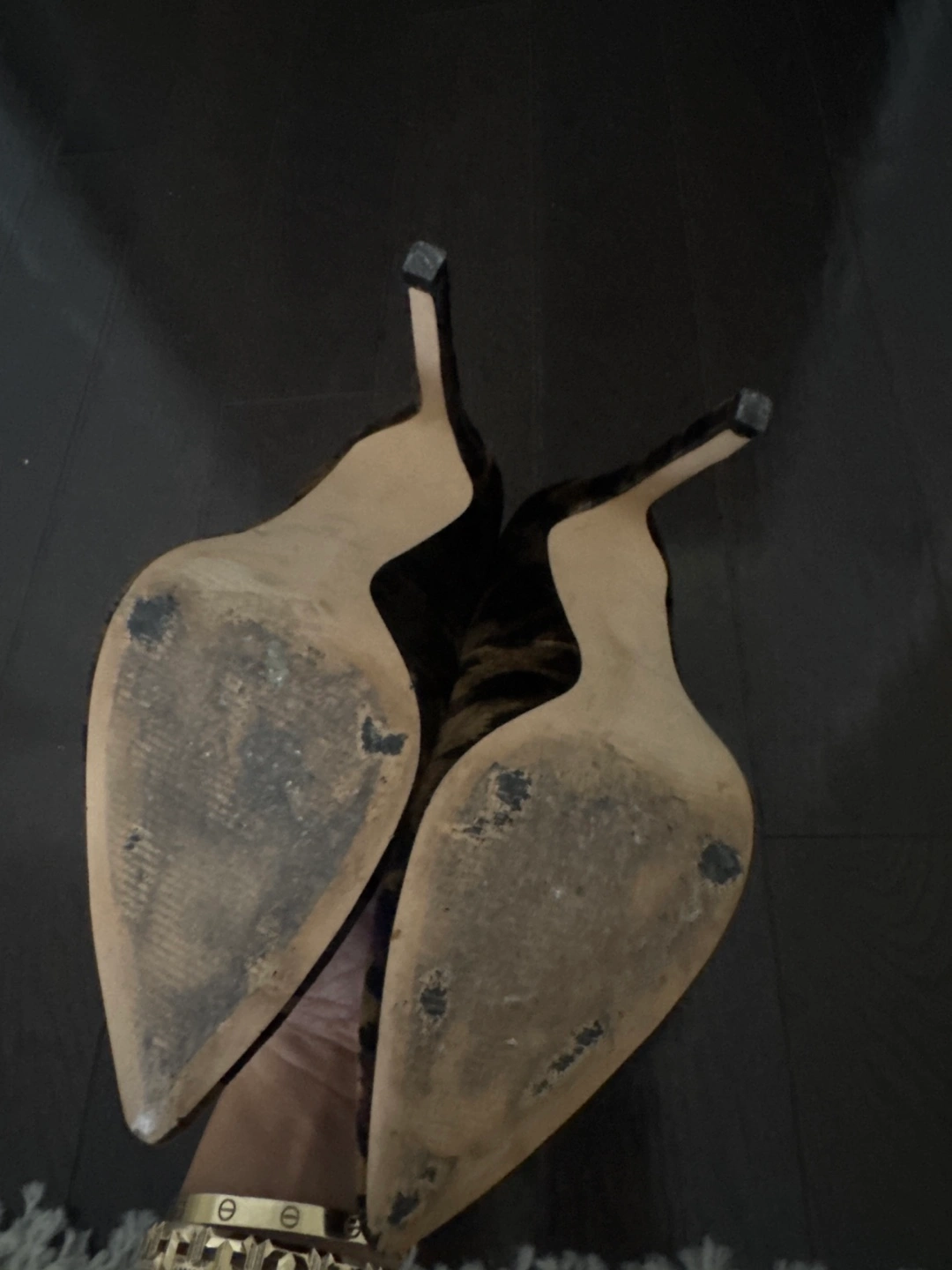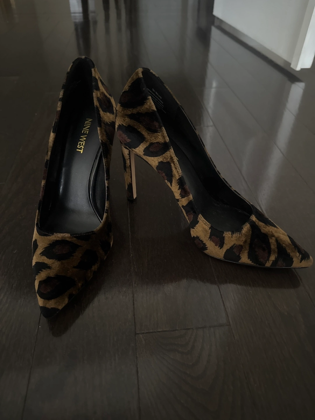 16Leopard print heels. Pointed toe. Suede material. High heels. Worn a few times.