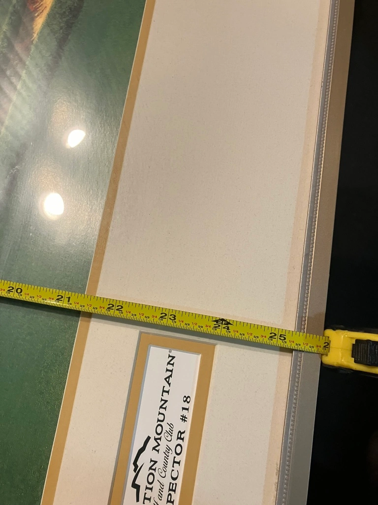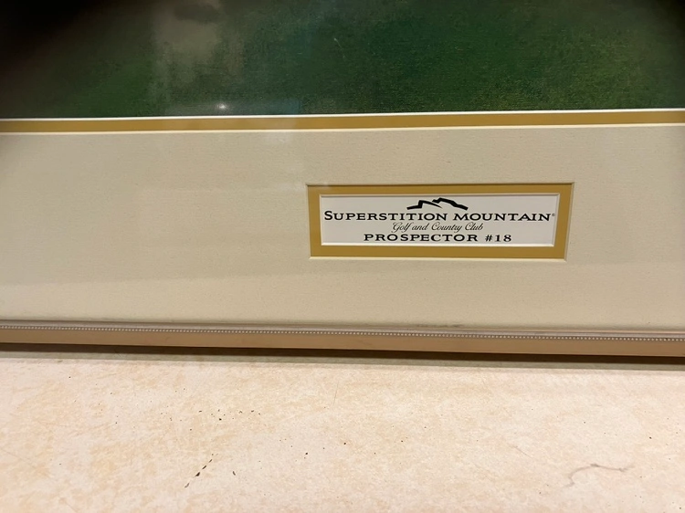 Framed print of Superstition Mountain Golf Course, Prospector #18. Measures approximately 34 inches wide by 25 inches high. As you can see in one of the pictures, the corner has a crack from moving please take a look at more of my ads