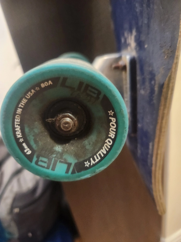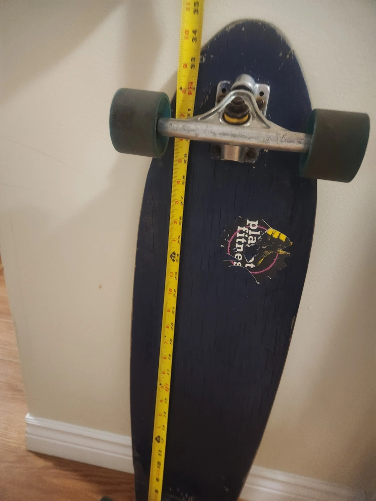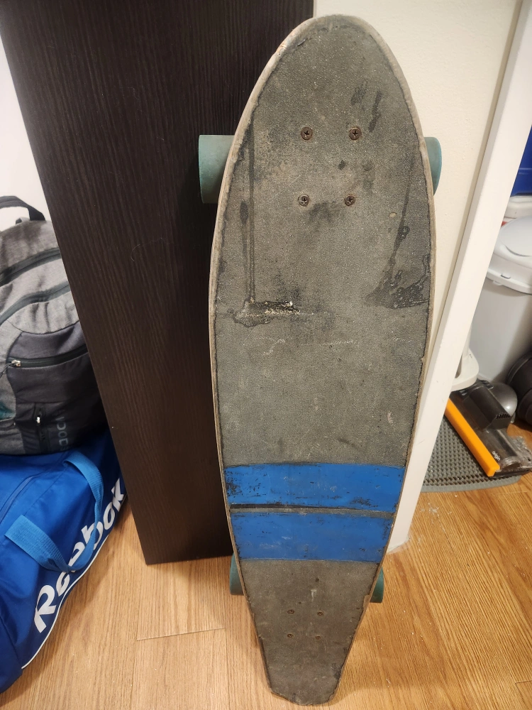 Longboard with blue grip tape. Used condition with wear and tear. Wheels are LibTech 69mm, crafted in the USA. board is 2' 11"" long. can meet downtown or spruce grove