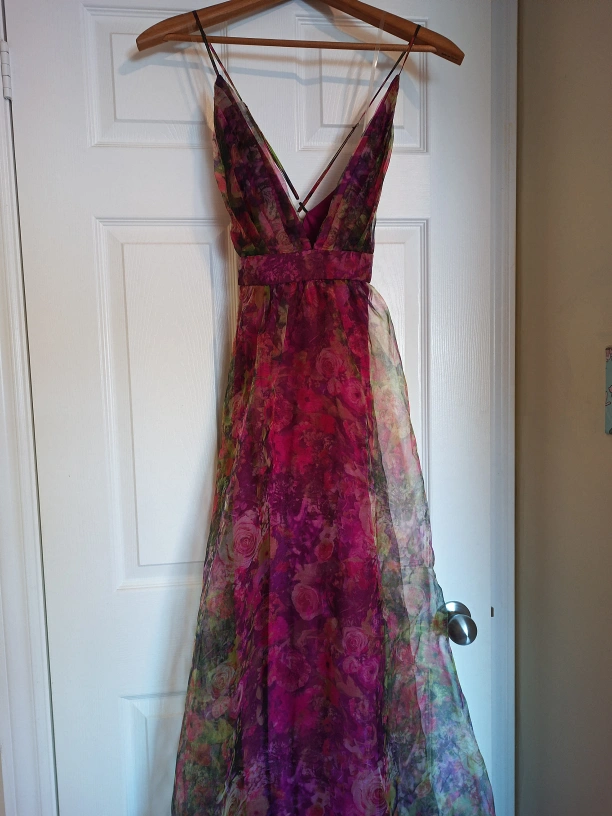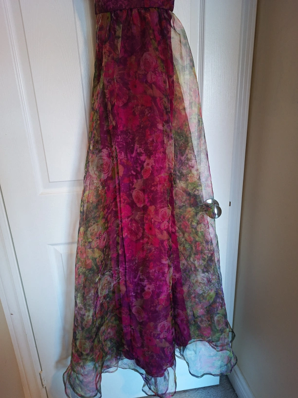 Magenta floral floor length dress (size S, never worn)