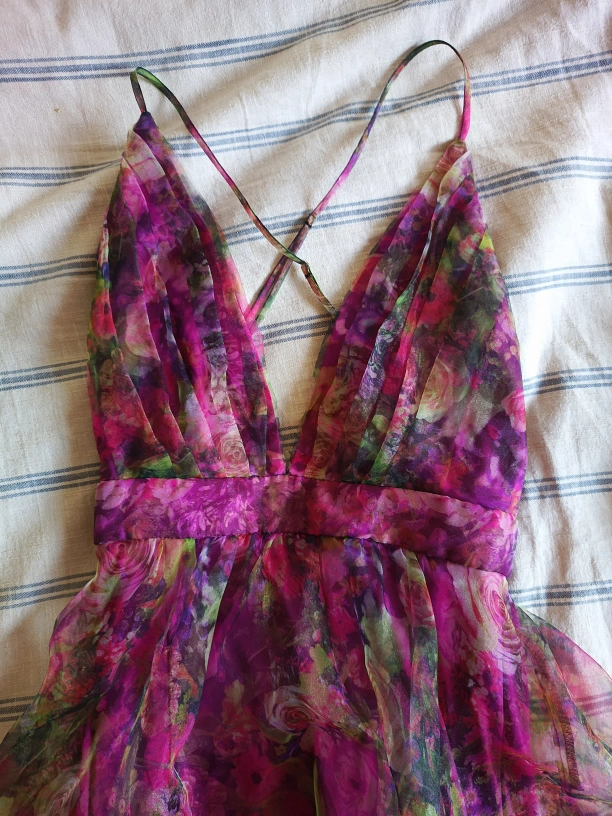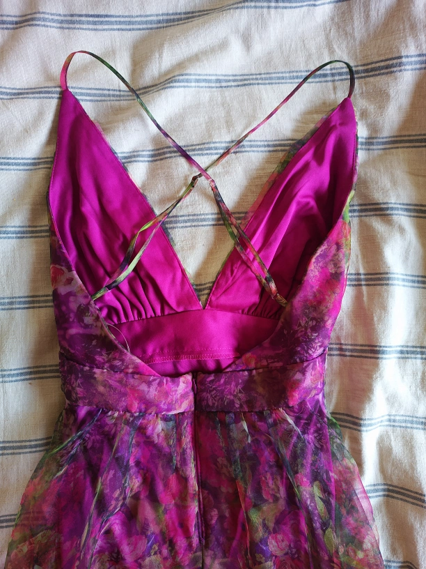 Never worn! Rubber Ducky brand magenta floral dress. Adjustable straps, high slits in underskirt. Dramatic and sexy.