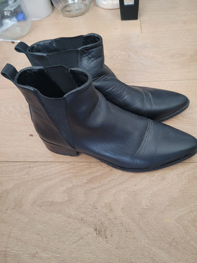 1000+Frank & Oak Palace Leather Chelsea Boot •wardrobe staple •Chelsea- style pull on boot •pointed toe •leather In overall very good preloved condition Size US 7.5 Please don’t ask if it’s available. If it’s not marked ‘Pending’ or ‘Sold’, then it’s available. **** Cash Only **** **** Pickup Only **** **** No E-transfers **** **** Serious Inquiries Only/ Serious Offers Only ****