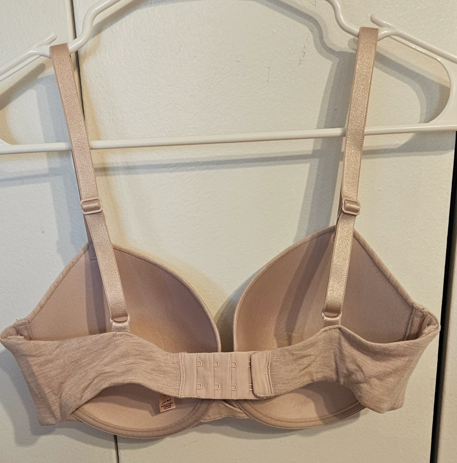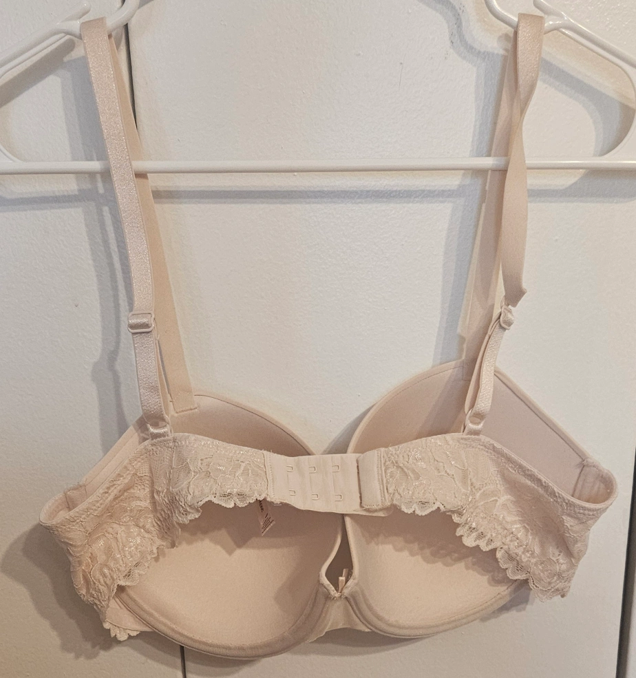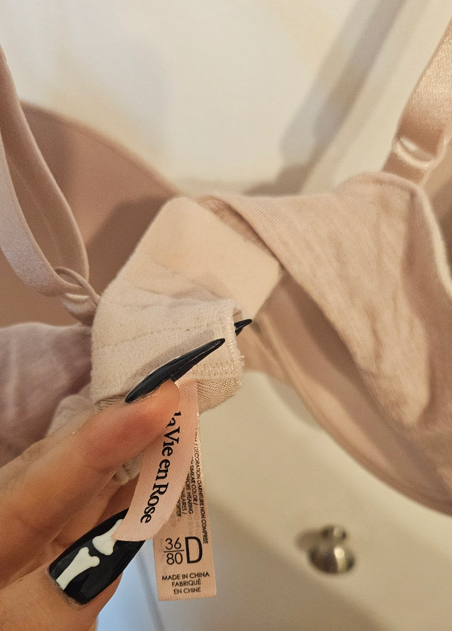 1000+Beige silky-like material bra with lace detailing. Size 36D. Adjustable straps. Light pink/lavender cotton material bra, adjustable straps. Size 36D $10 each*** (Paid $30+ for each) Both bras have been worn once, removed tags, and washed. They didn't fit right and can not be returned to the store. pick up only* (no meet-ups or drop-offs)